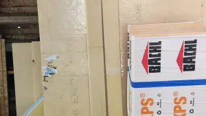 Ergebnis ist, 350g pro m2 vom 672 mit dem feinen Zahnspachtel aufgetragen passt gut. Die erste Wand ist ausgehärtet und mit 2cm XPS überraschend stabil.