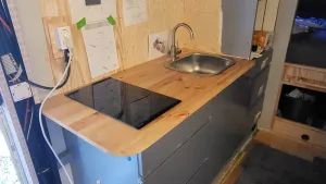 Jetzt sind die Möbelplatten für Waschtisch und Küchenzeile an der Reihe...