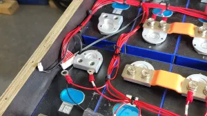 Die "alte" Verbindung 50mm² mit Rohrkabelschuhen zwischen Zelle 4 und 5 durch "maßgeschneiderte" Cu-Bleche ersetzt.