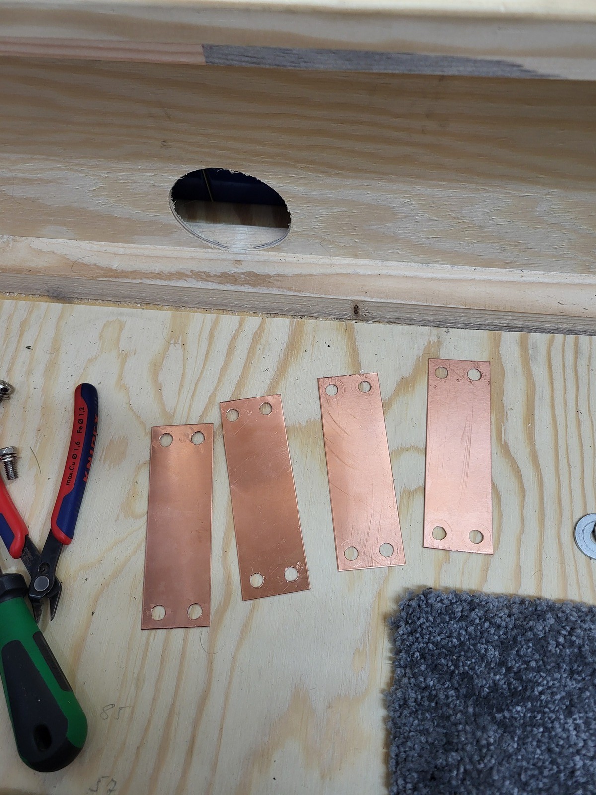 Die "alte" Verbindung 50mm² mit Rohrkabelschuhen zwischen Zelle 4 und 5 durch "maßgeschneiderte" Cu-Bleche ersetzt.
