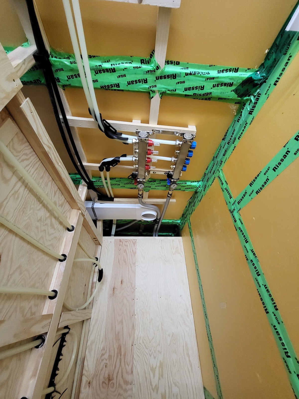 Der Heizkreisverteiler sitzt auch und hat seine ersten Anschlüsse bekommen