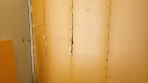 Mittlerweile sind die seitlichen Montagehilfsleisten entfernt und nun fällt erst richtig auf, dass die Wand so, wie sie aktuell ist nicht genügend Steifigkeit hat. Der Nachteil des Möbelkoffers...