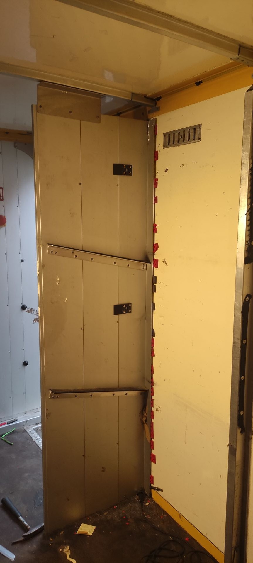 Als erstes kamen die Regale raus. Wie bei allen anderen Berichten zu lesen ist das nicht ganz ohne, geht aber mit dem richtigen Werkzeug und lohnt sich in Hinblick auf Gewicht und Raumgewinn...