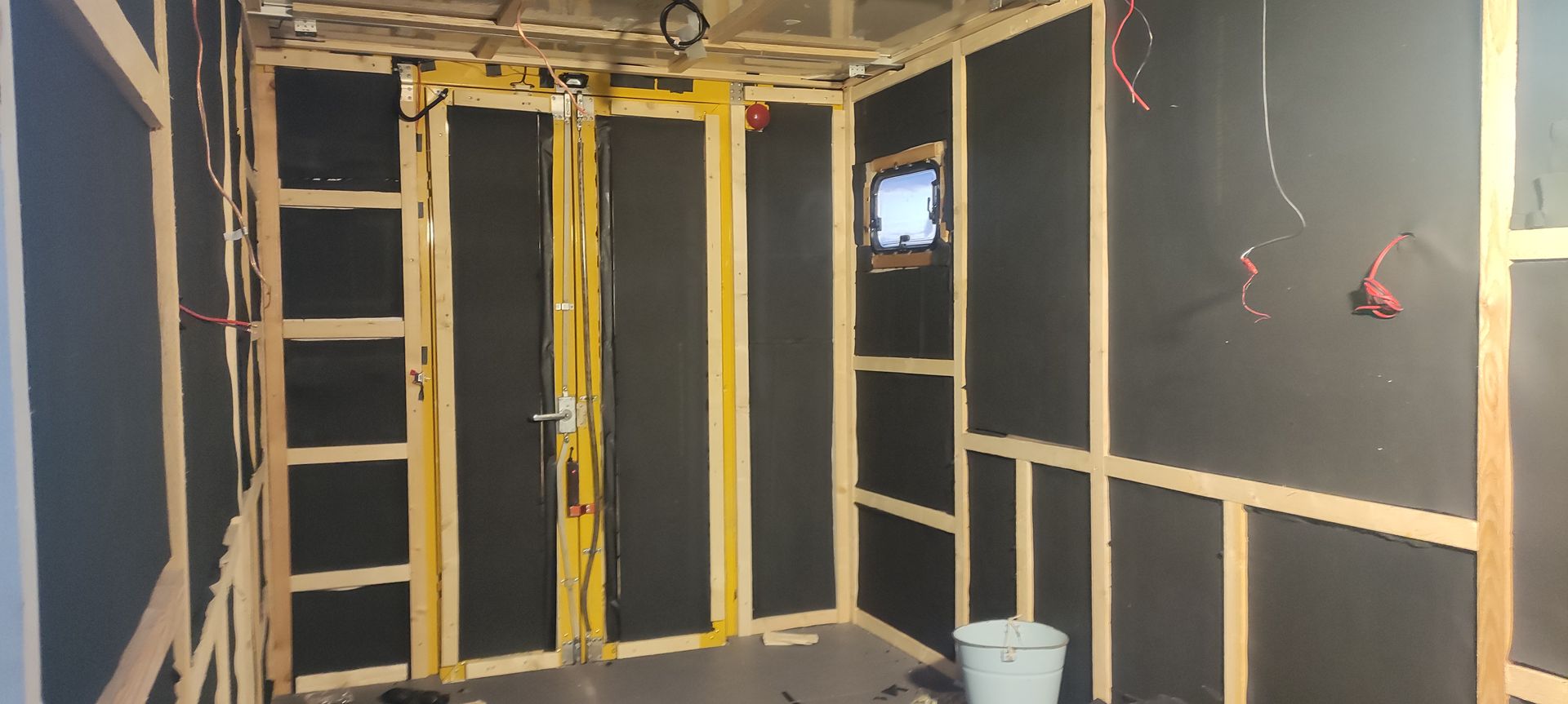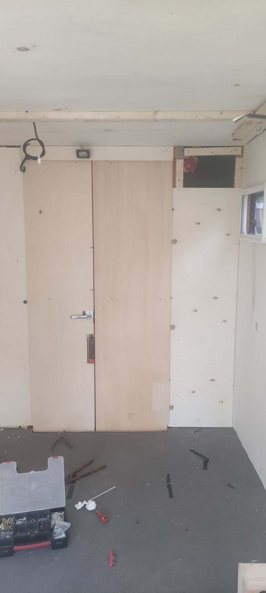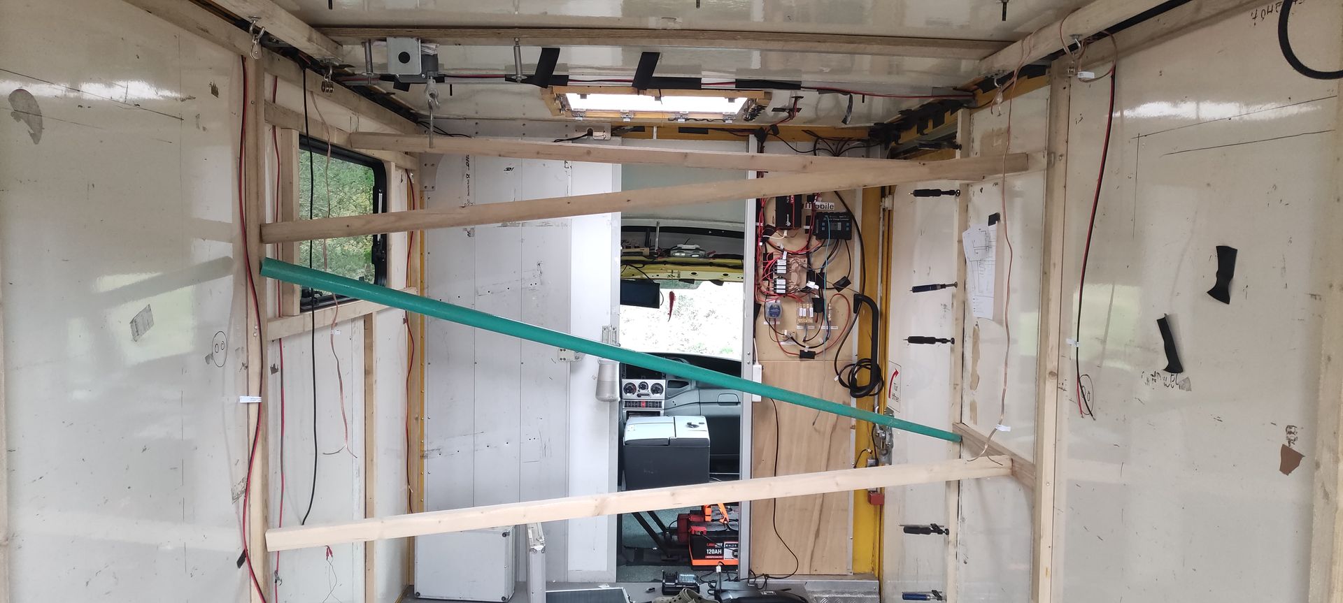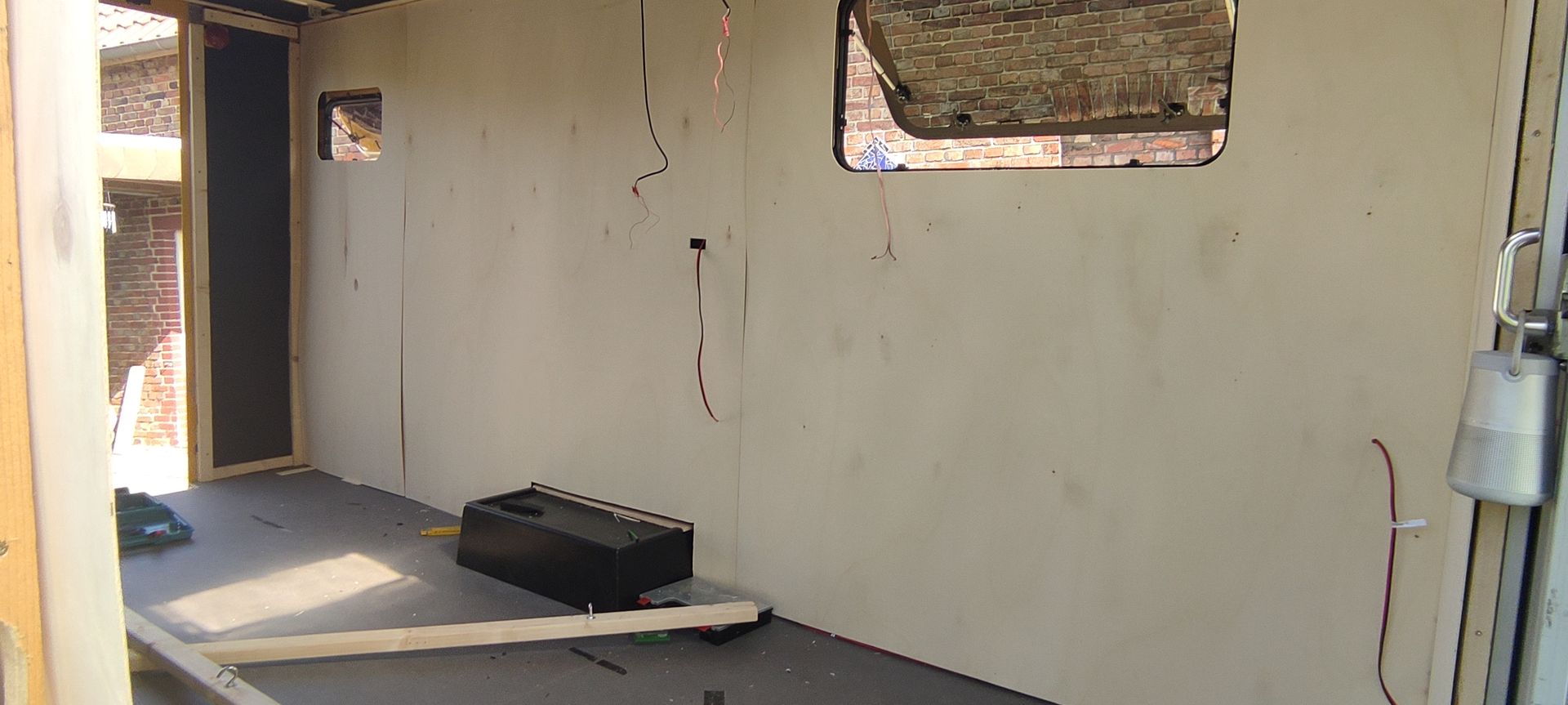 Die Vorrichtung und Halterung für das Hubbett musste ganz zu Anfang rein. Dann alles wieder ausgebaut um die Isolierung Elektrik etc. Einzubauen... O