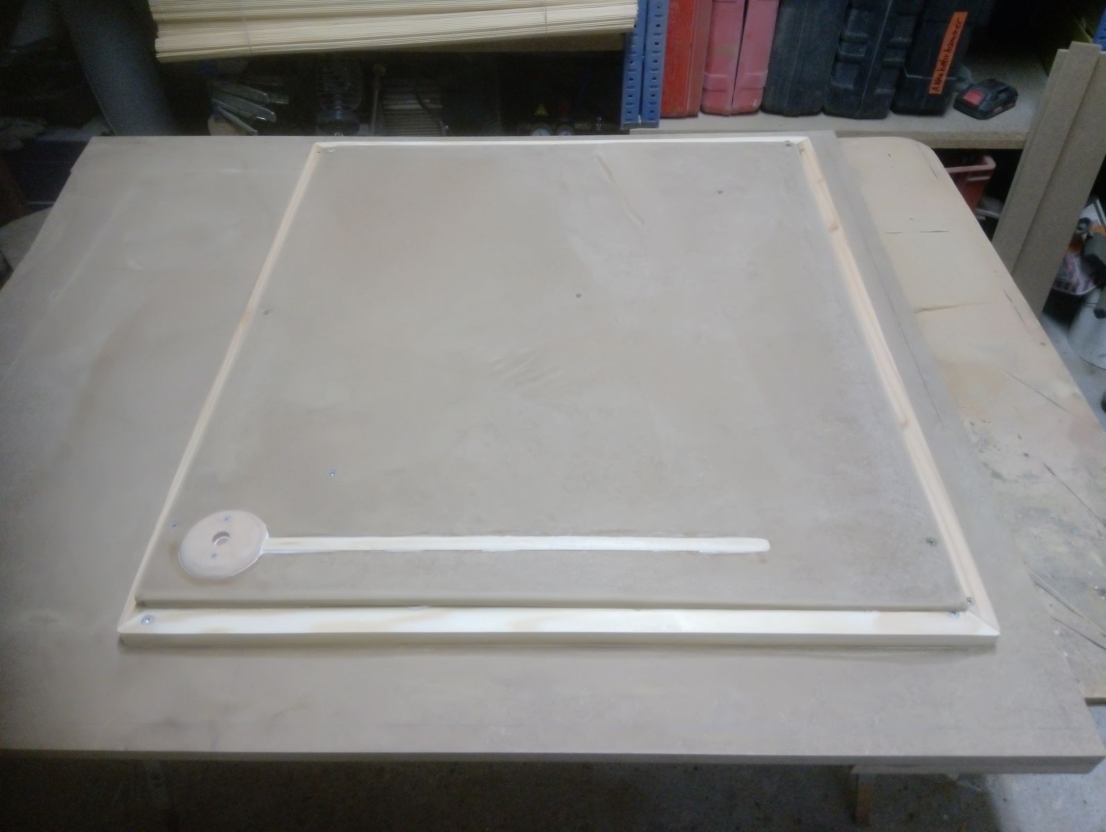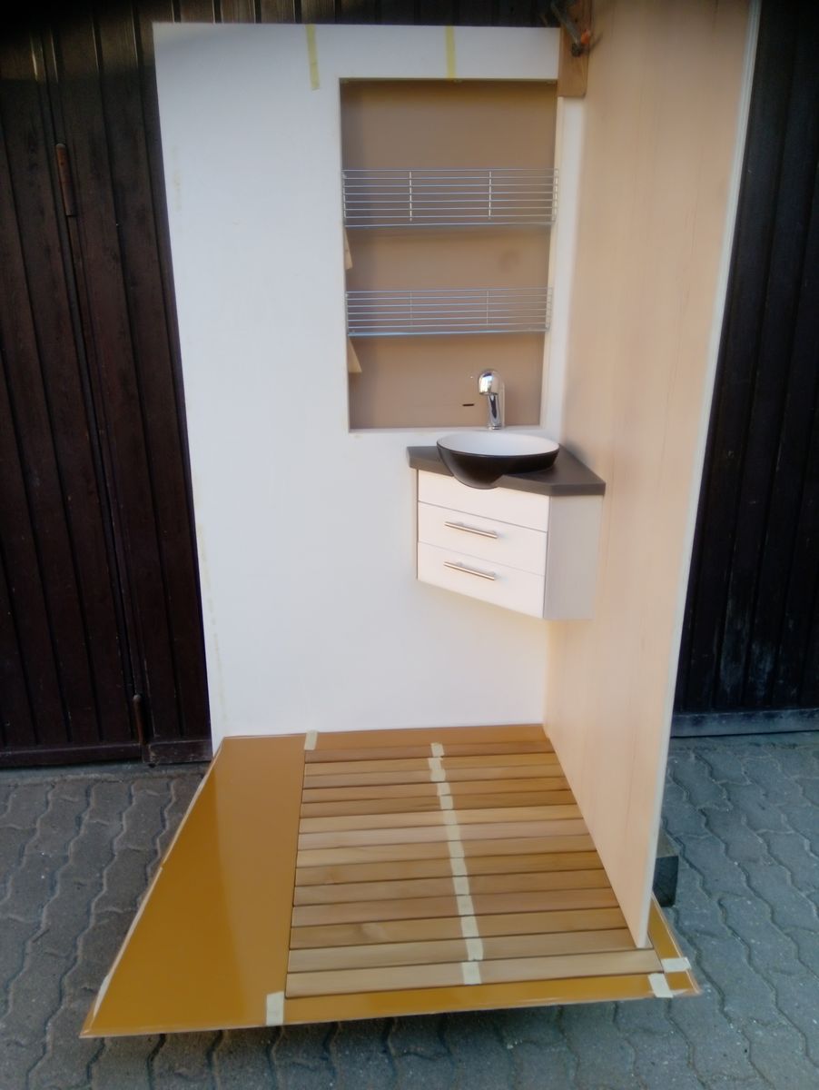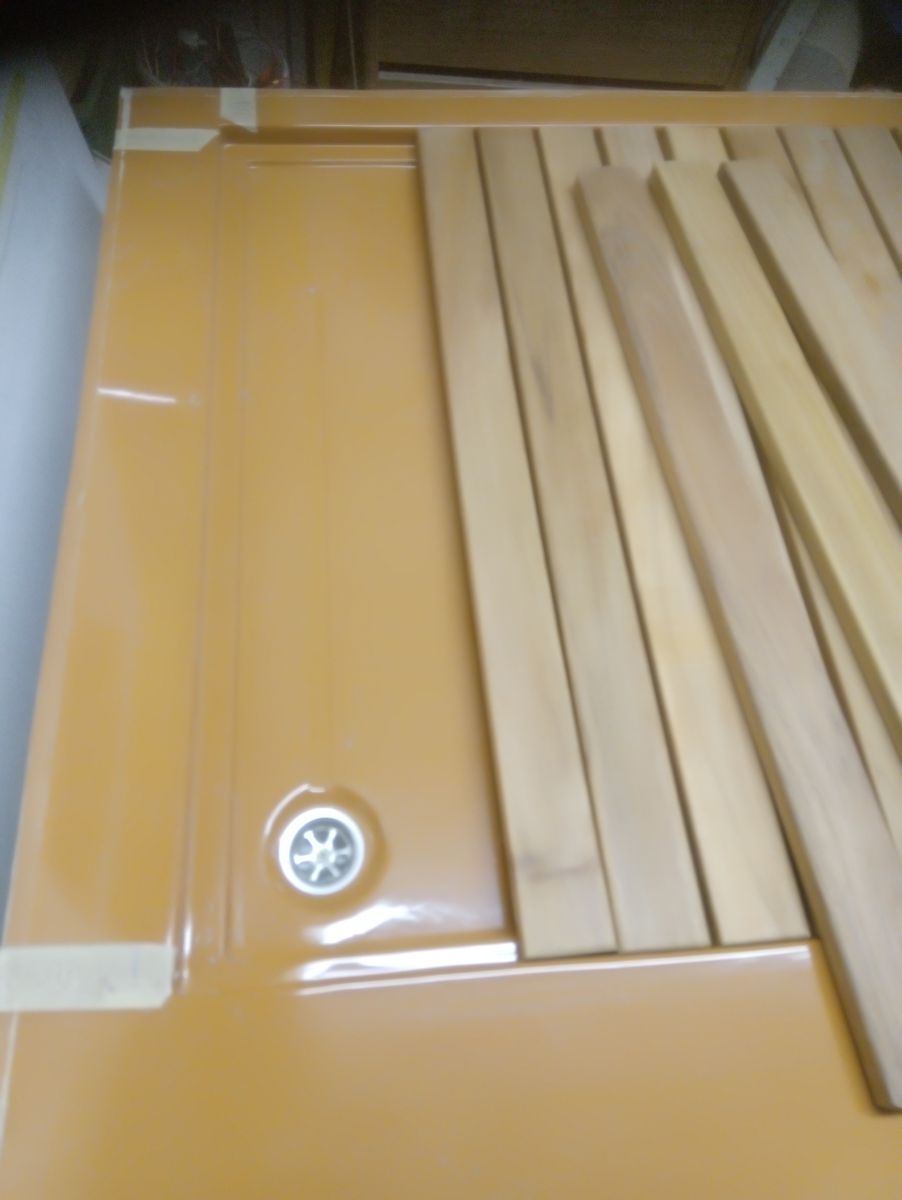 Duschwanne auf Mass, aus GFK mit Lattenrost. Die Form ist von mir, gespritztes GFK vom Spezi