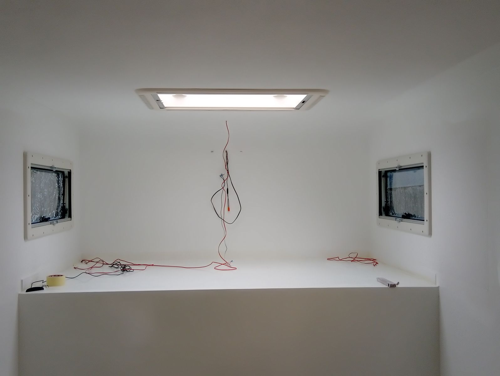 das Regal kommt noch hoch und verdeckt die Kabelführung der Rückfahrkamera und der zusätzlichen Bremsleuchte