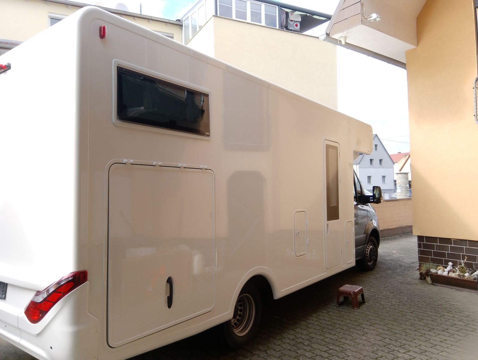 Seid der Planung im Sommer 2020 ist nach der Fahrzeuganlieferung im Februar 2021 einiges passiert, Ein Mercedes Sprinter 519 CDI mit allen Assystenten wird mit einer Ormocarkabine zum Teilintegrierten verwandelt.