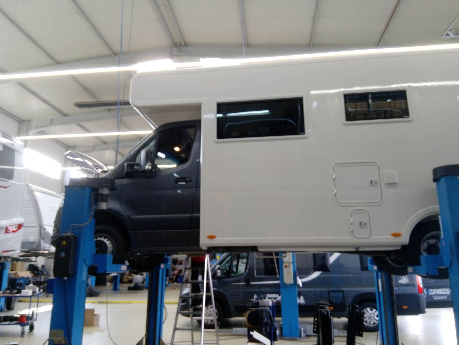 Geplant war der Termin schon 2 Monate, denn das Arbeitspensum war gewaltig: Hydraulische Stützenanlage, Luftfederung hinten und dicke Anhängerkupplung.