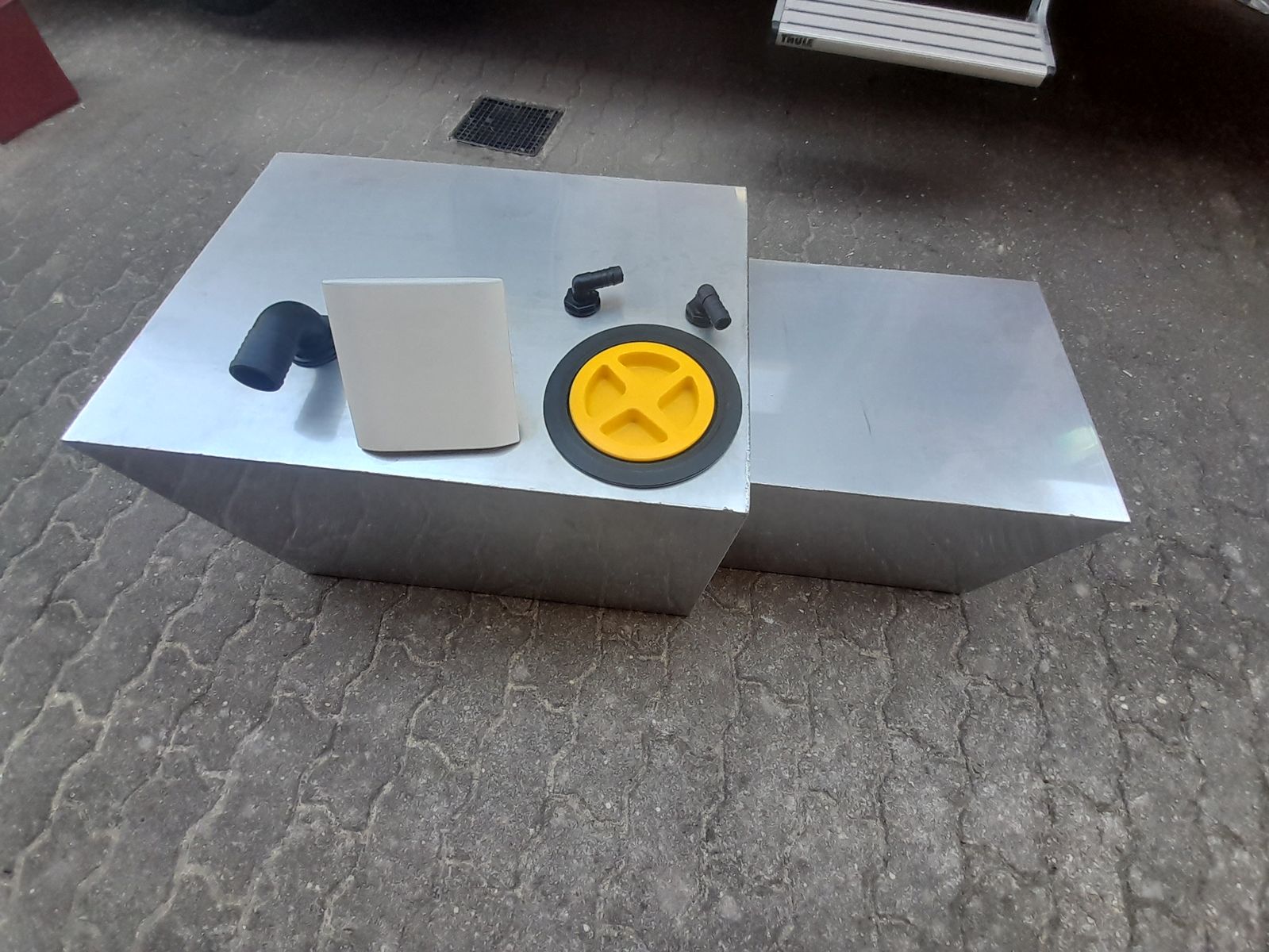 Der Wassertank (200l) aus Edelstahl ist endlich fertig und wird eingebaut.
