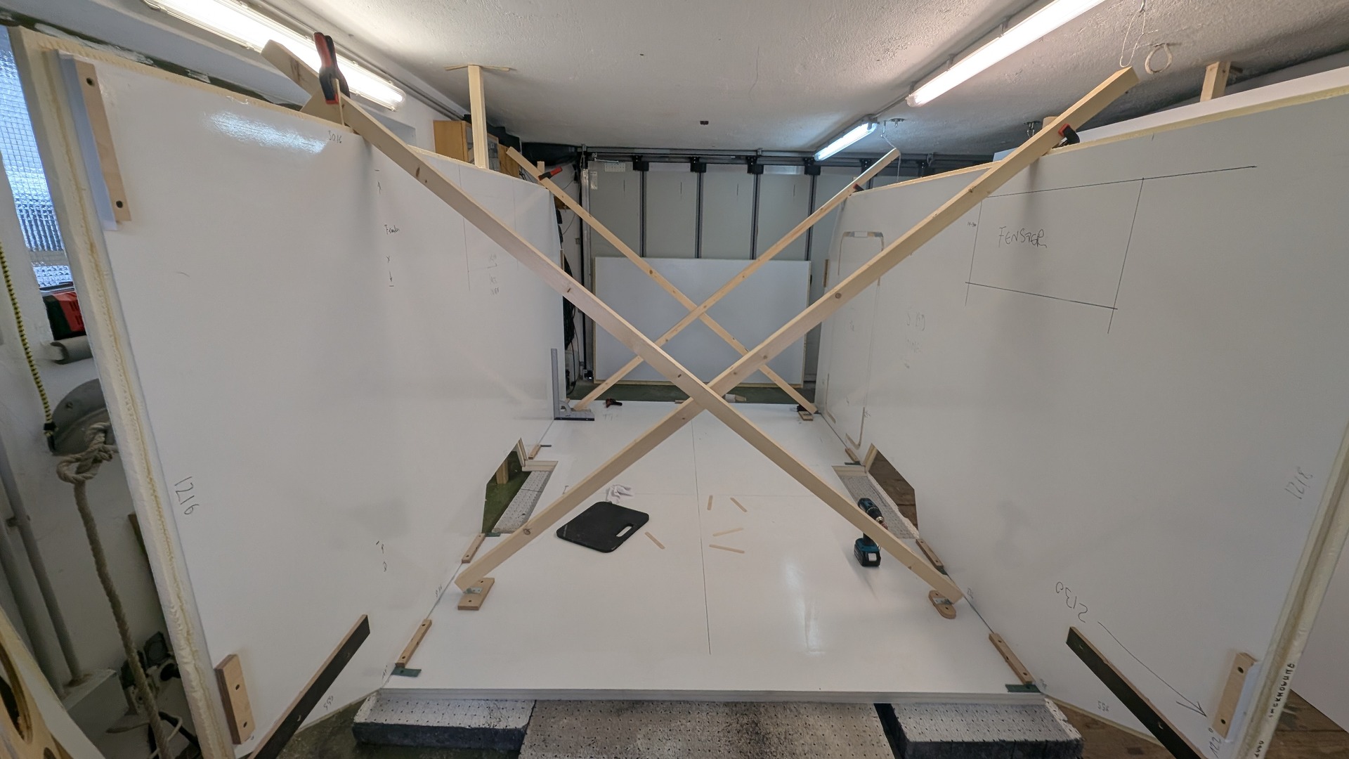 Die Masse sind 2300x1300. Von unten gesehen laminiere ich am Rand eine 20x20 ULeiste rundherum ein, auf der Oberseite dann ein Umlaufender 50x50mm Winkel der 6mm übersteht. Am Dach des Anhängers kommt dann ein umlaufendes 20x20mm Winkelprofil das in das UProfil eingreift. in die ULeiste kommt dann ein Moosgummiband als Dichtung. Mit 6 Schrauben möchte ich das Dach dann von unten/innen befestigen.