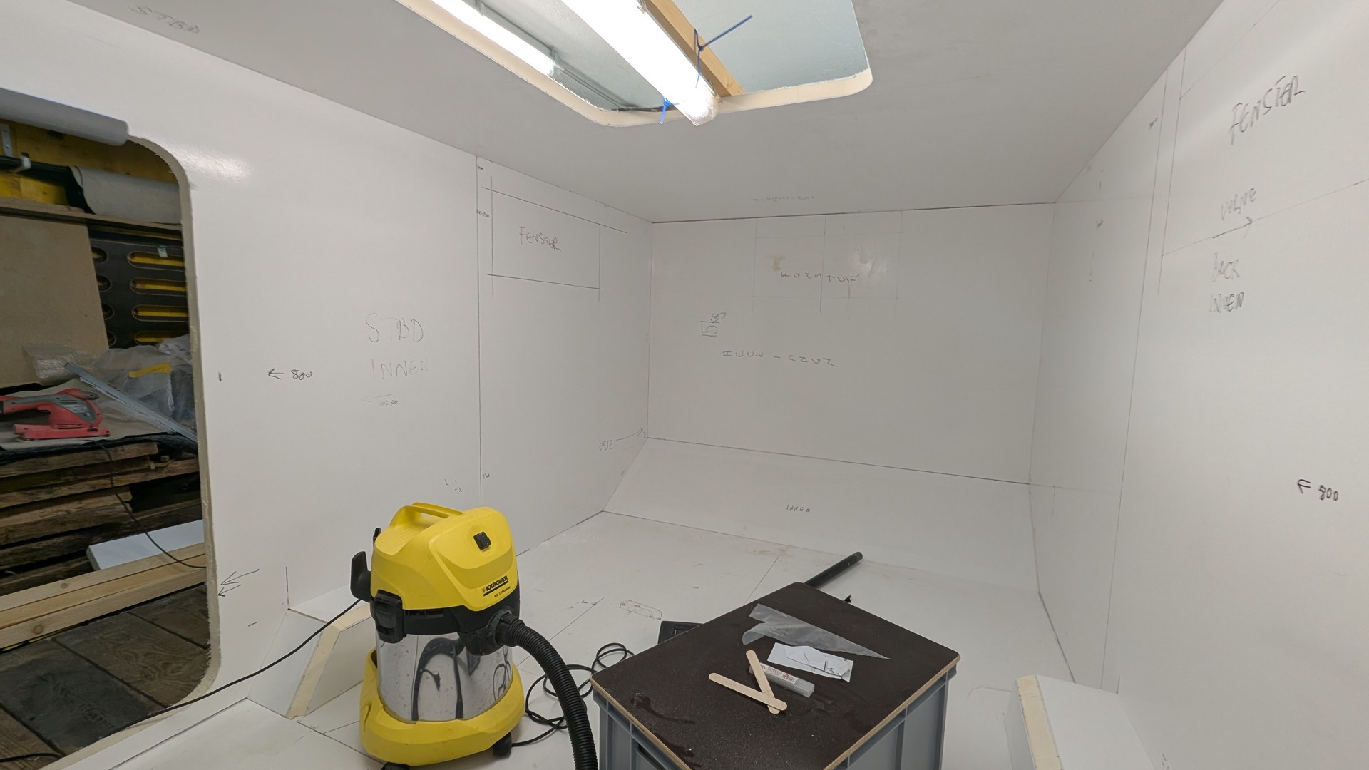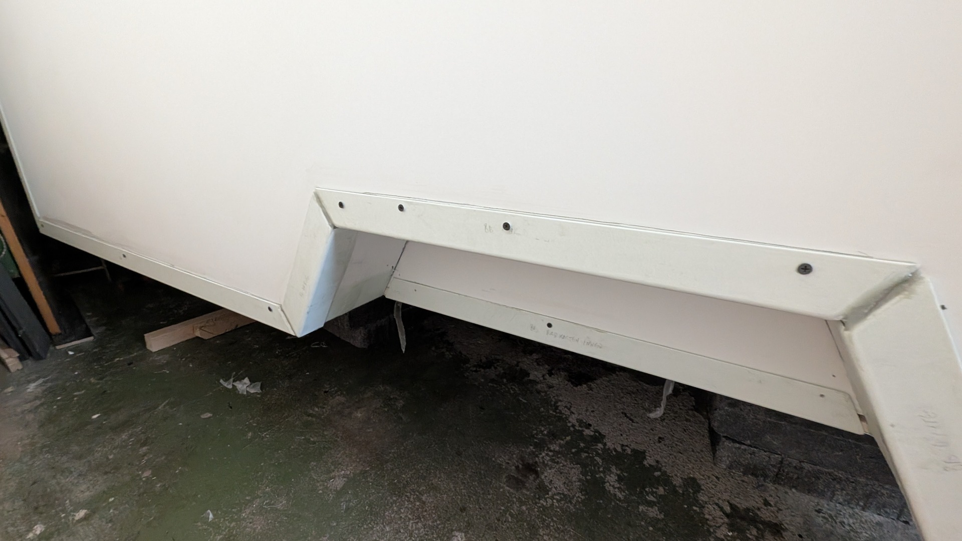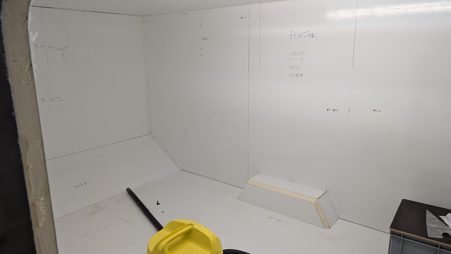 Die Duschwanne aka Stehhöhenerweiterung nach unten habe ich von oben mit Winkeln einlaminiert, jetzt fehlt noch von
