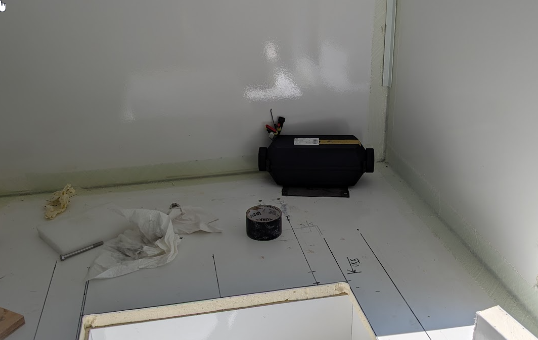 Habe mal die Aufnahme für die Standheizung eingebaut, zwischen Blech und Sandwich noch 10mm Pappel als "isolierung".
