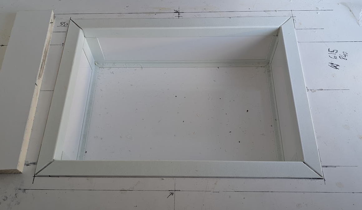 Diese Box aus 40mm Material ist auf Gehrung geschnitte und an Aussenkanten gefast. Sie wird auch als Duschwanne fungieren, so der Plan.