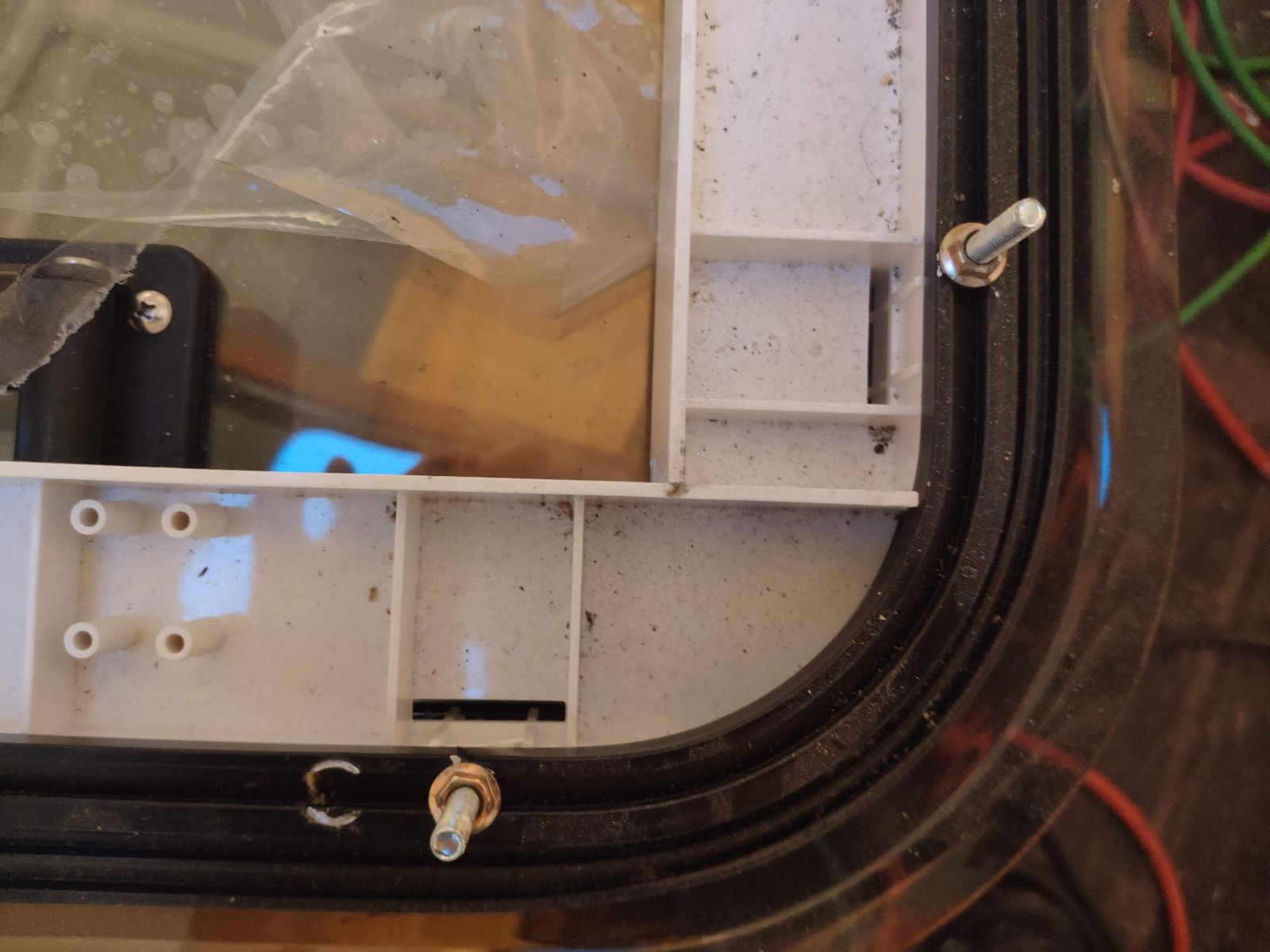 So, der Fußboden ist fertig. Die Klappen fehlen noch. Das mache ich, wenn der Belag drauf kommt. Die Abwasserinstallation existiert rudimentär, alles was unterirdisch ist. Die Einläufe für Grau-und Schwarzwasser sind übrigens umgedrehte Dusch-Siphons. Die bauen flacher als 90° Kniee in 40mm und der Auslauf ist auch in einem flacheren Winkel, also weniger VerstopfungsgefahrDer Rest kommt dann mit der Installation der Keramik.