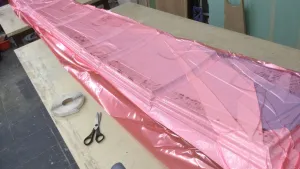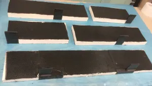 In diesem Jahr habe ich den Zwischenrahmen gebaut und mit dem Fuso sowie der Kabine verheiratet. Lange Zeit habe ich mich mit der gerundeten Seitenverkleidung beschäftigt, gestern die geraden Flächen für die Schlösser auf den Innenseiten der Platten gefräst, eine Lage Kohlefaser aufgeklebt und alle 8 Klappen in einen Vakuumschlauch gesteckt. Ergebnisse sehe ich erst im neuen Jahr.