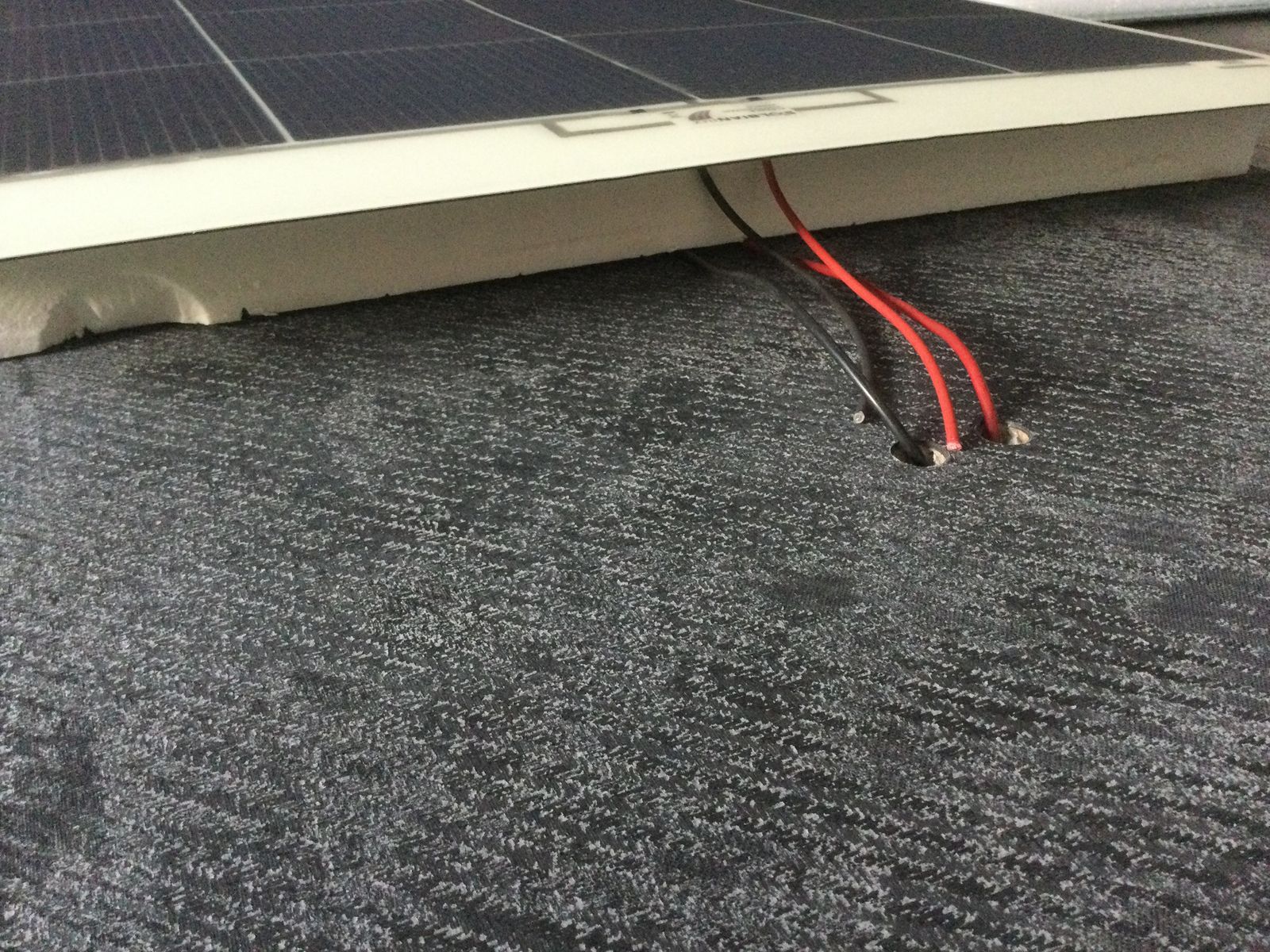 Da es inzwischen kalt wurde, durfte ich das Dach mit ins Wohnzimmer nehmen und die mittlere Solarzellenreihe montieren. Den im Dach integrierten Kabelkanal habe ich gut getroffen, er hätte vielleicht ein bisschen breiter sein können. Das ist die Strafe, wenn ich es komplizierter als notwendig mache, aber jetzt sind die Kabel bis zur inneren Anschlussdose durchgezogen.
