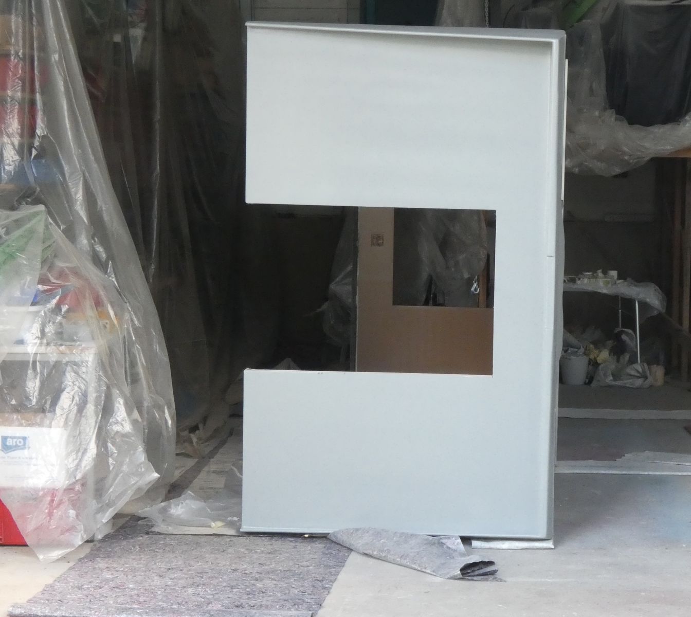 Den Deckel mit der am Vortag lackierten Decke gedreht und aufgesetzt. Der Deckel hat ordentlich Spachtelmasse geschluckt und mit den Solarzellen wiegt er jetzt ~100kg.