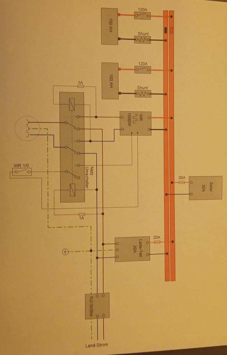 HalloIm WoWa werde ich auch 230V Anschlüsse bereitstellen ...Hauptsächlich für Landstrom und automatisch über WR ... Zum umschalten verwende ich ein Netzumschalter , der dann auch die Aktivierung des WR mit schaltet ...