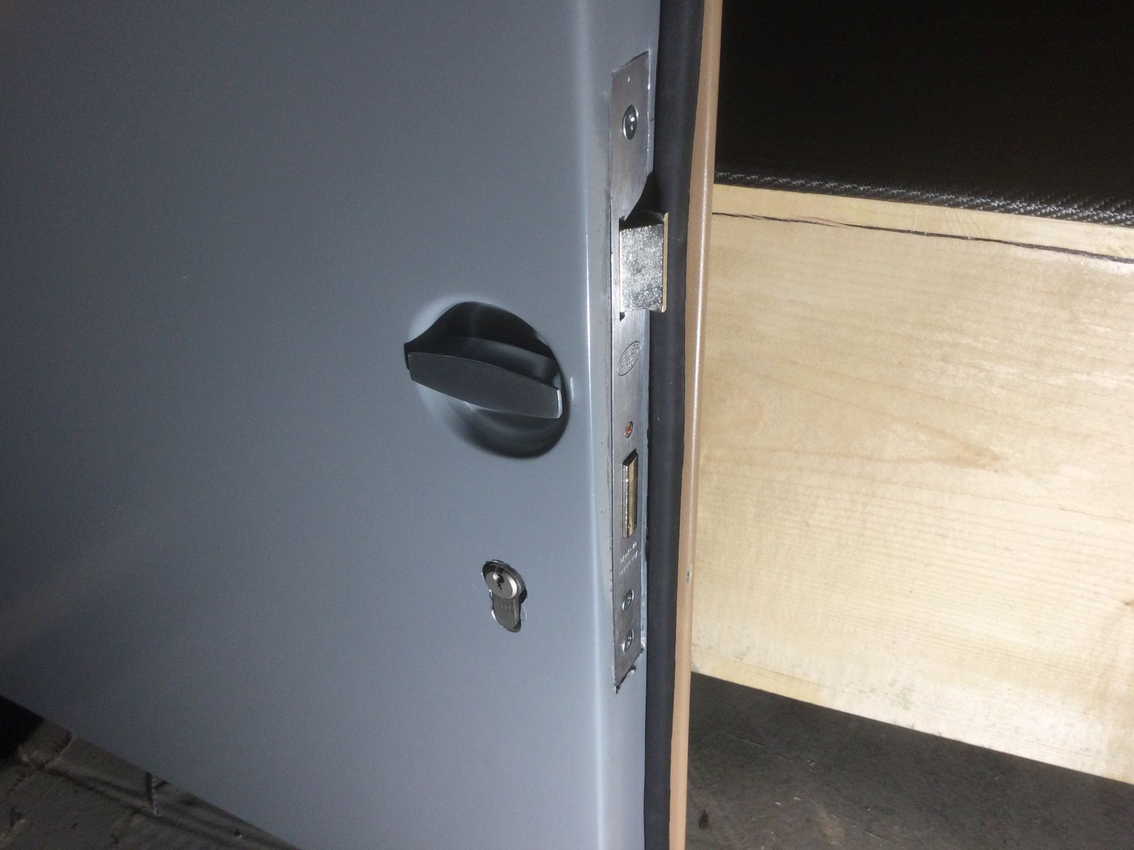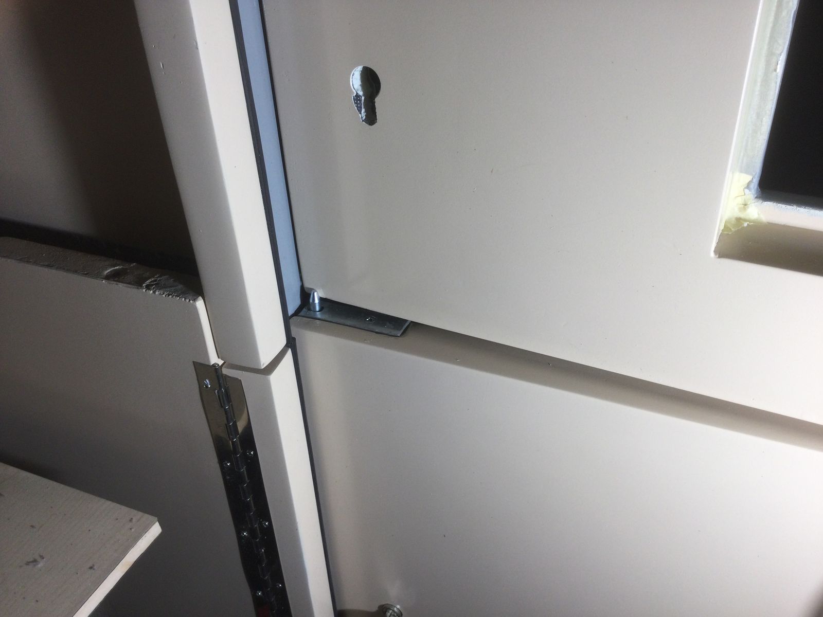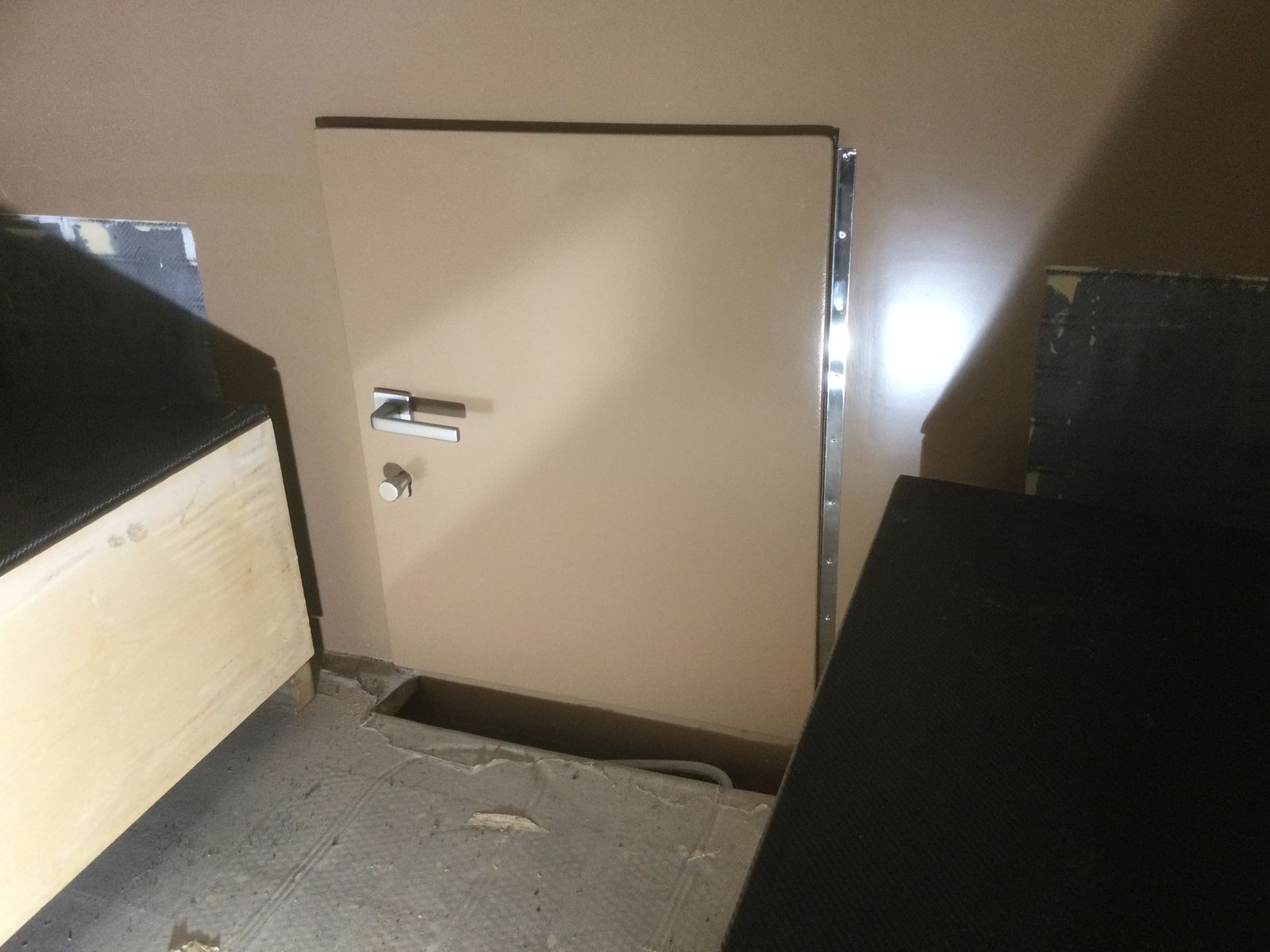 Die Tür Richtung Fahrerhaus zum durchschlüpfen liegt später unterhalb des Tisches. Sie wiegt komplett 4,4 kg. Aussen ist sie weitgehend bündig, da hier der Deckel dran vorbeifährt.