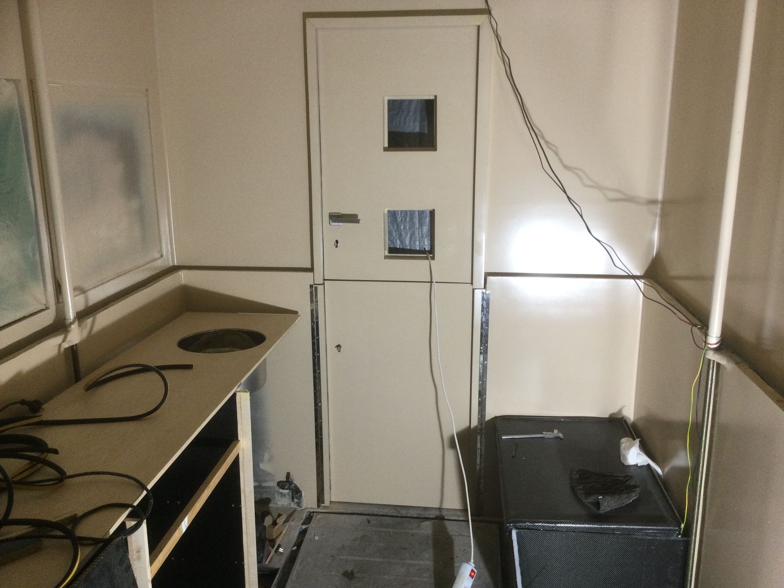 Bei den Türen fehlen noch einige Dichtungen und die richtigen Schlösser mit Drehknäufen innen. Aber die Leerkabine ist jetzt fertig und kann abgeschlossen werden. Angefangen habe ich im August 2021.