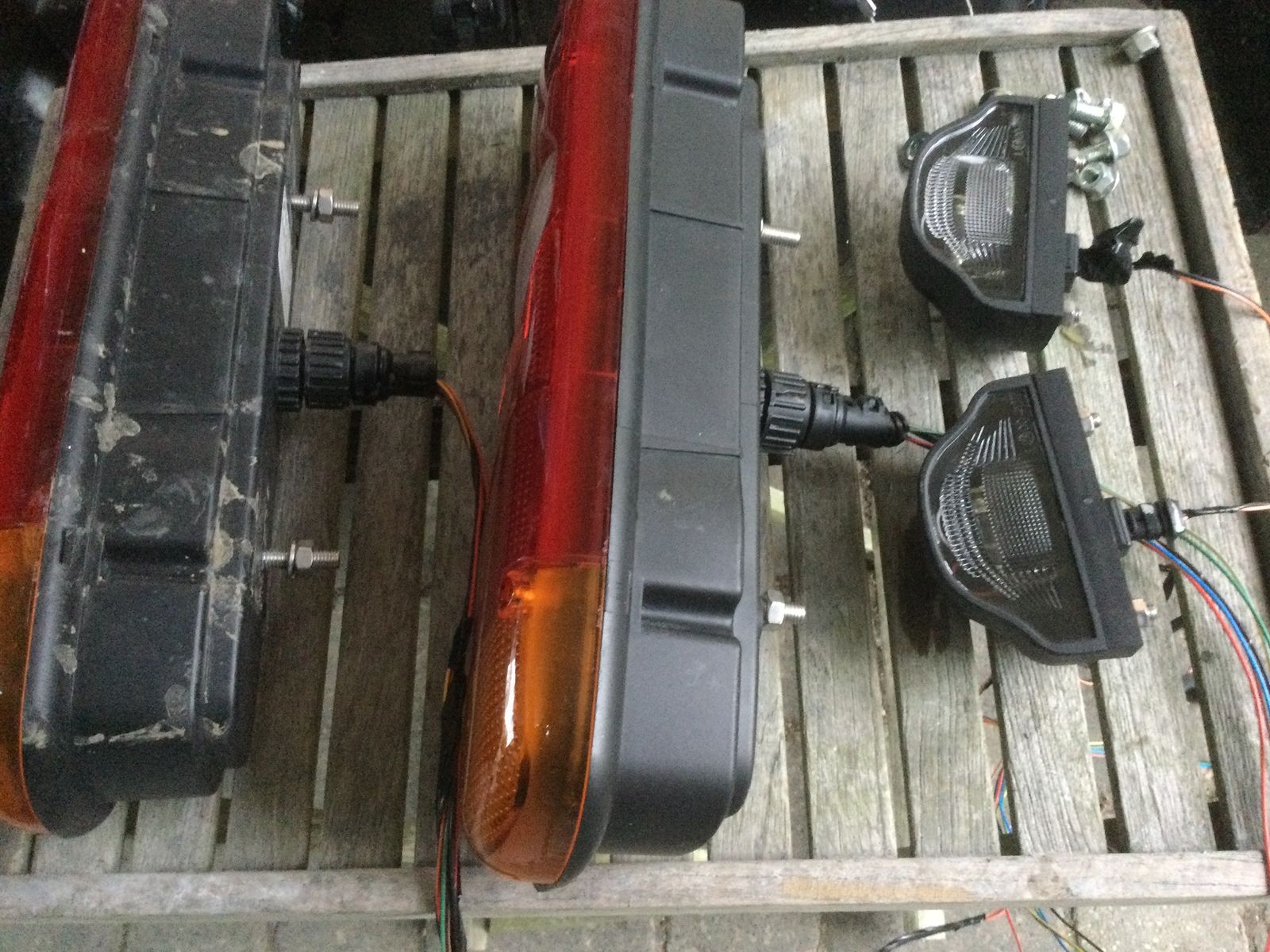 Die Beleuchtung ist vom Unterfahrschutz abgebaut und soll in den Heckträger des Zwischenrahmens.