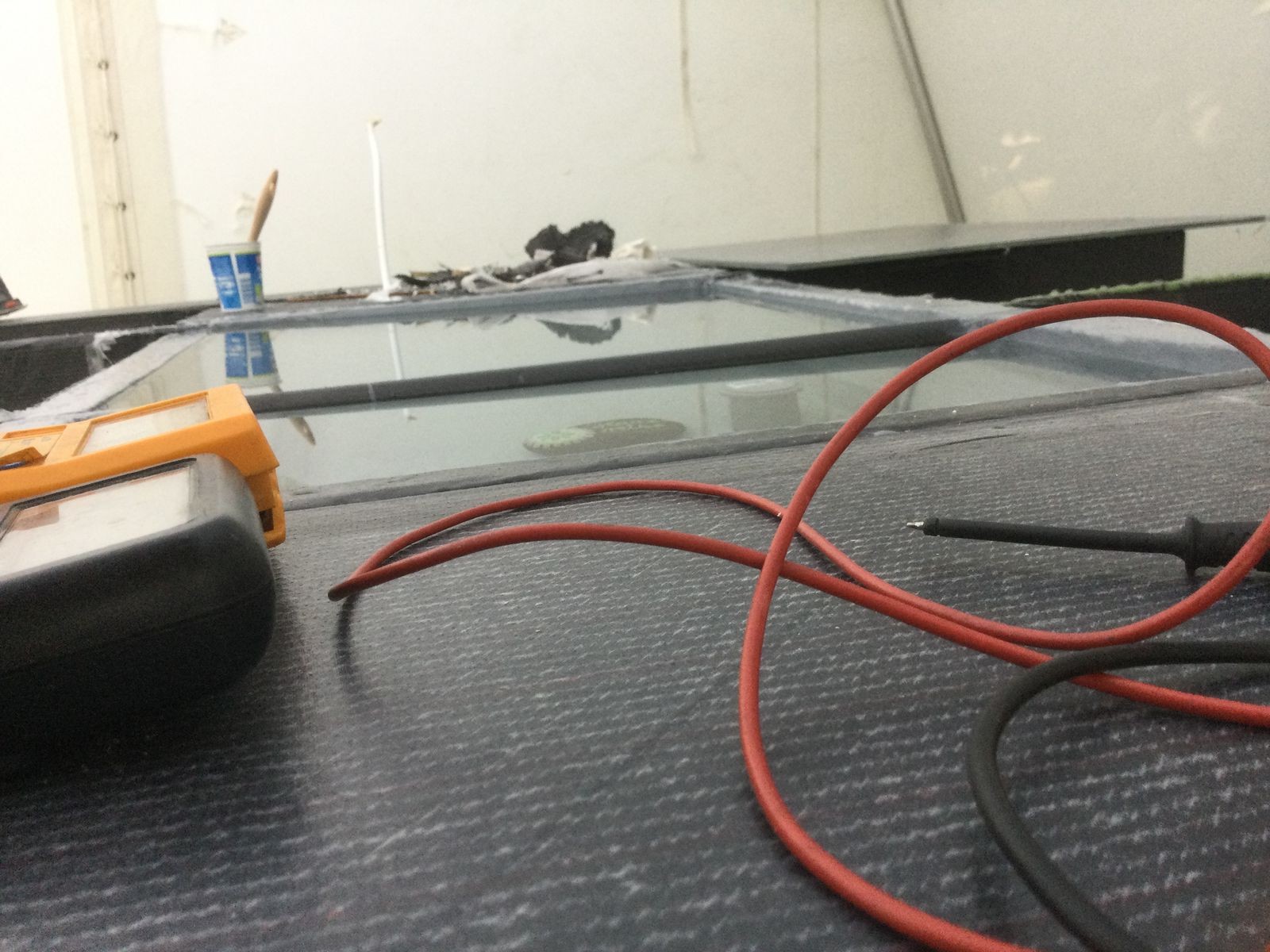 Mit einer kompletten Tankfüllung habe ich zunächst den elektrischen Widerstand zwischen Kohlefaser und Wasser gemessen und musste noch ein paar fehlerhafte Stellen, vor allem an den Ausläufen, nacharbeiten.