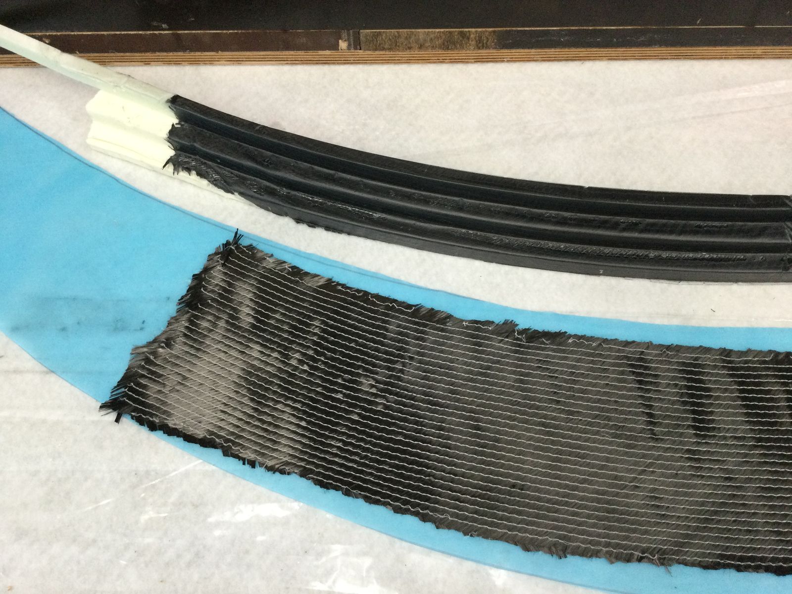 Trennfolie gebogen zuschneiden und Kohlefaser in Form bringen,