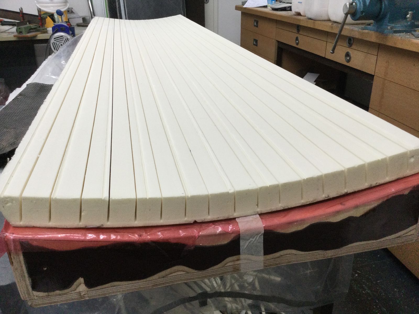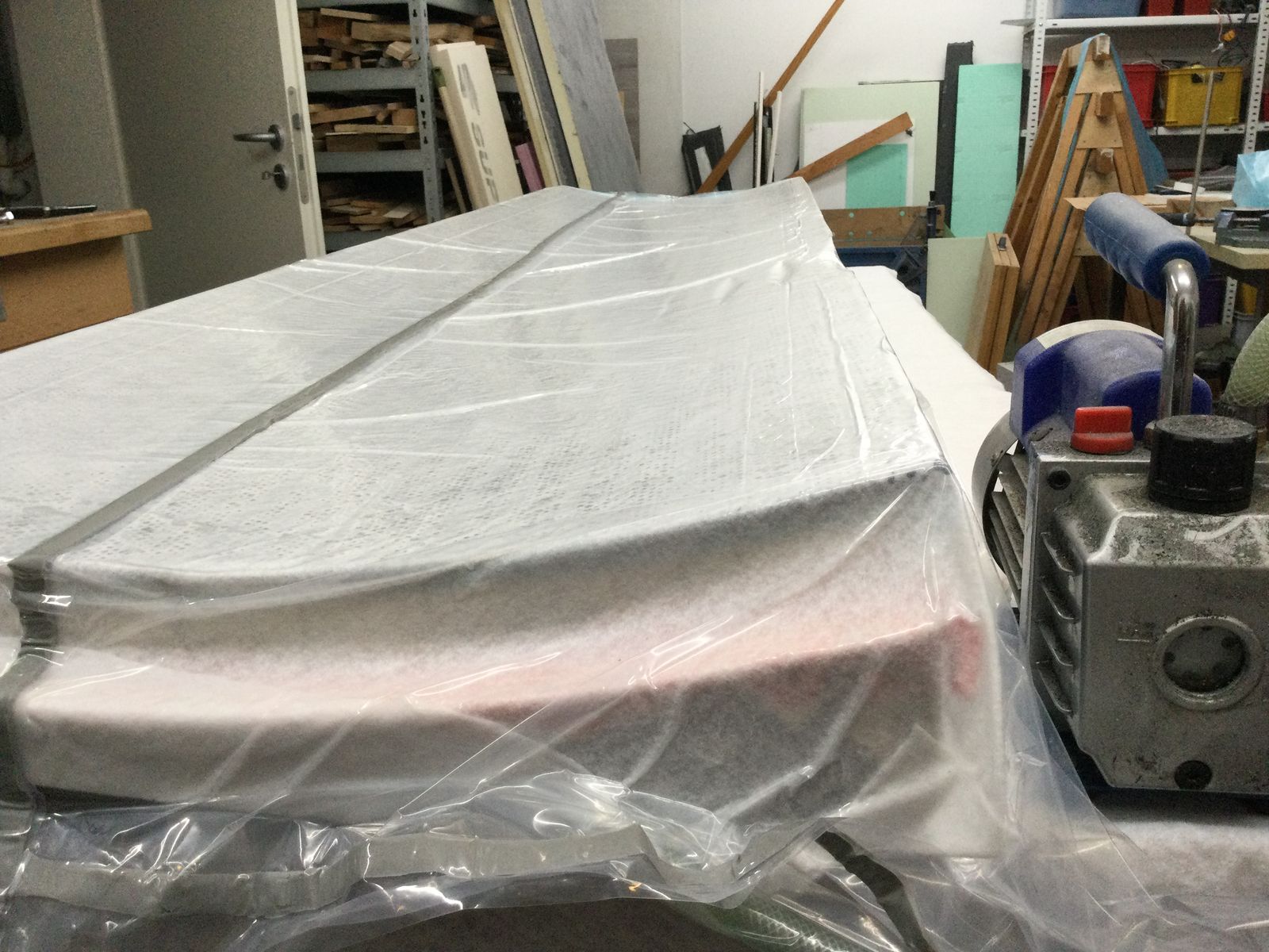 ... und die zweite Seite mit Vakuum laminiert. Ich musste ein Loch in die Folie schneiden um den Unterdruck zu reduzieren, weil mir das Vakkuum die Form zerdrückt hat.