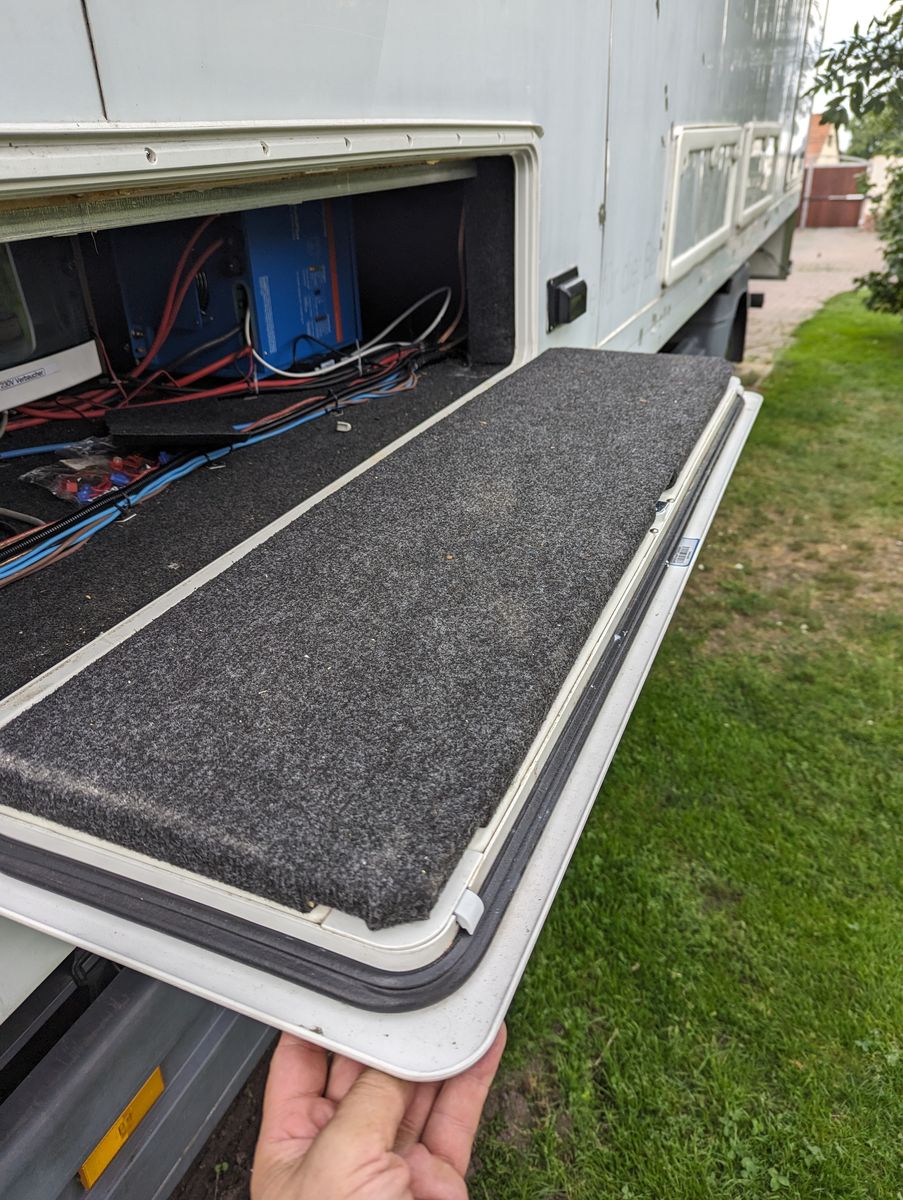 Da ich noch Material über hatte, sind nun auch die Klappen mit 20mm Styrodur gedämmt und mit Filz verkleidet.![]()