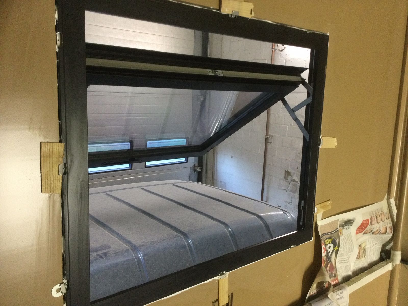 Da es mit der Heizung erstmal nicht weitergeht, habe ich die ersten Fenster eingebaut, bis der Klebstoff zuneige ging.