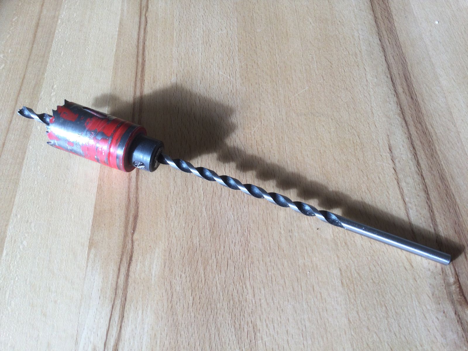 Logisch, dass die Bohrkrone an dem Gewinde des Bohrers hochläuft, also noch ein Rohr dazwischen.