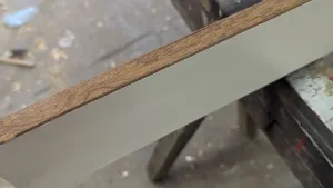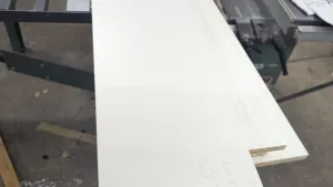 Mit dem Möbelbau bin ich im Heck, im Schlafzimmer gestartet. Dort kommen rechts und links Hängeschränke an die Wände. Damit es nicht zu einfach wird mit abgeschrägter Klappe und zweifarbig. Beim Bau hab ich gemerkt, dass Spanplatte 19mm recht schwer ist. Die anderen Möbel werden also 16mm und mit etwas leichterer Konstruktion.