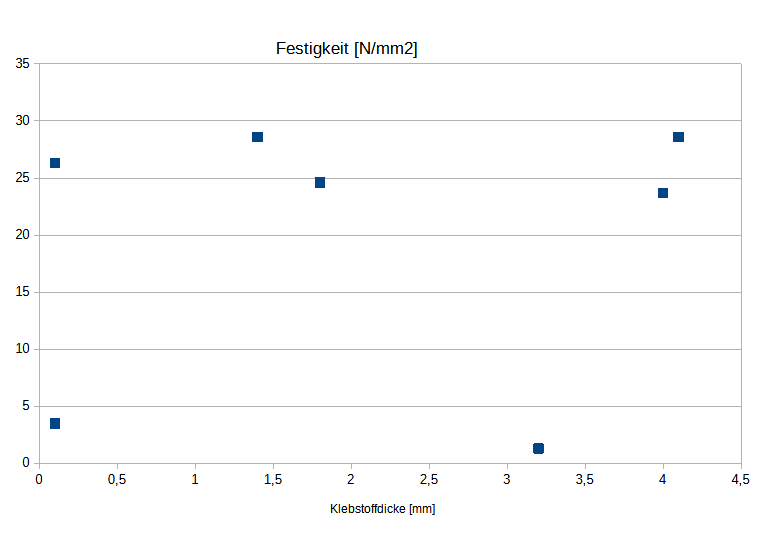 Die unteren zwei Punkte gehören zum Sikaflex. Im Datenblatt mit 3,5N/mm2 angegeben, passt dieser Werte nur bei dünnen Schichten.