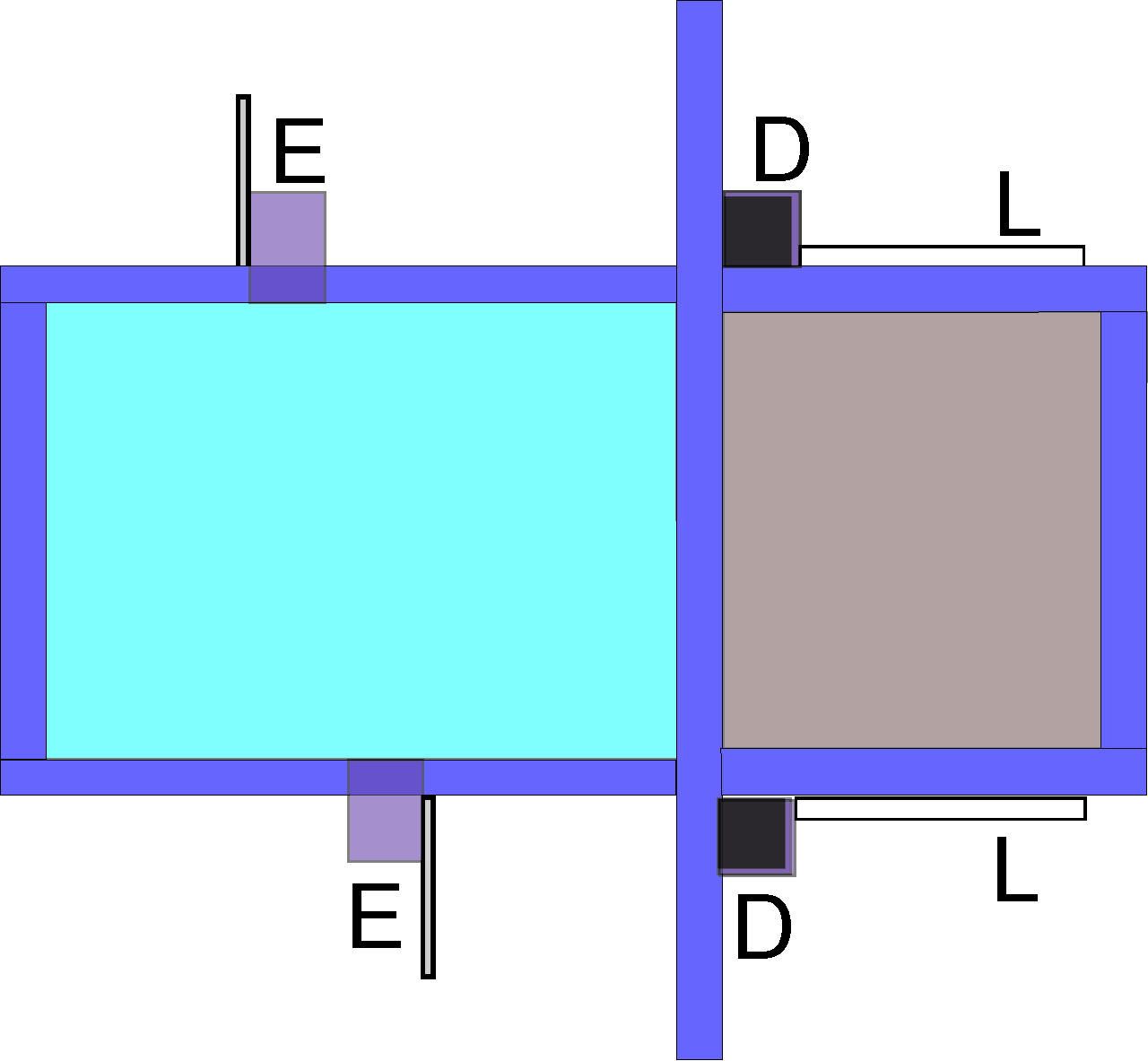 E= einfache Laschen mit stabilisierenden Platten von angedeuteten Staukästen