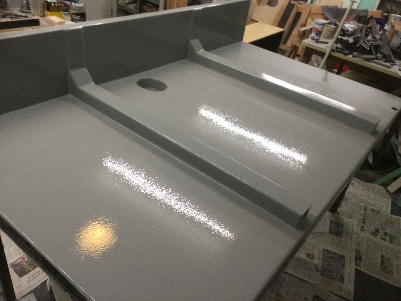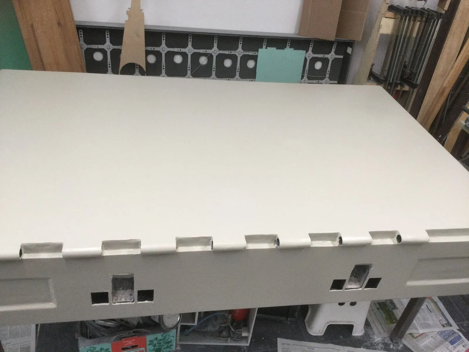 Dann kam meine Lieblingsbeschäftigung, das spachteln und schleifen. Die Styrodurplatten waren in der Dicke leider nicht masshaltig. Das Tagebuch weist viele Tage Arbeit auf, hier die grundierten Ergebnisse :