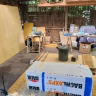 nachdem ich alles nochmal überdacht habe, habe ich mir Kleber, XPS und Polyester Flachbahn besorgt. Mit ein paar Holzplätzen eine plane Ebene aufgerichtet, die Alustangen waren da hilfreich. Dann mit verschiedenen Klebe-Mengen experimentiert.