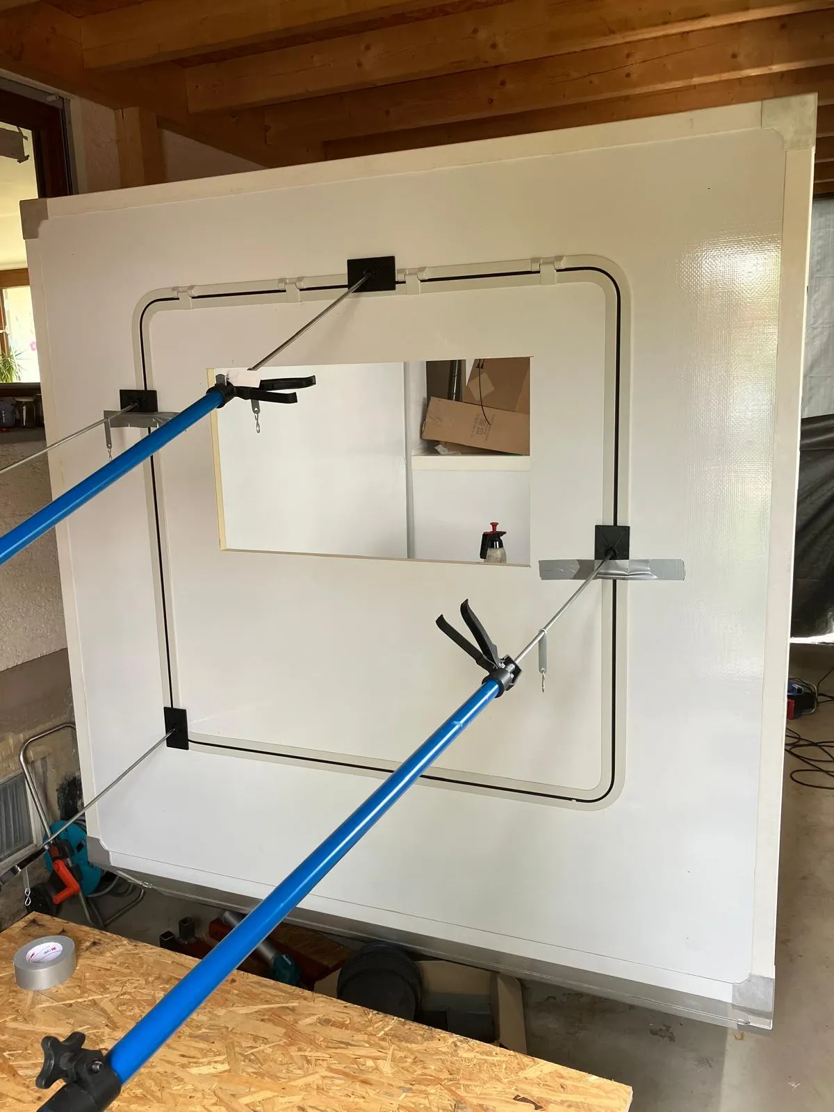 Bis zur fertigen Leerkabine fehlt noch: Tür einbauen, Fenster und Luken verbauen, Innenwinkel verkleben, lackieren und verfugen.