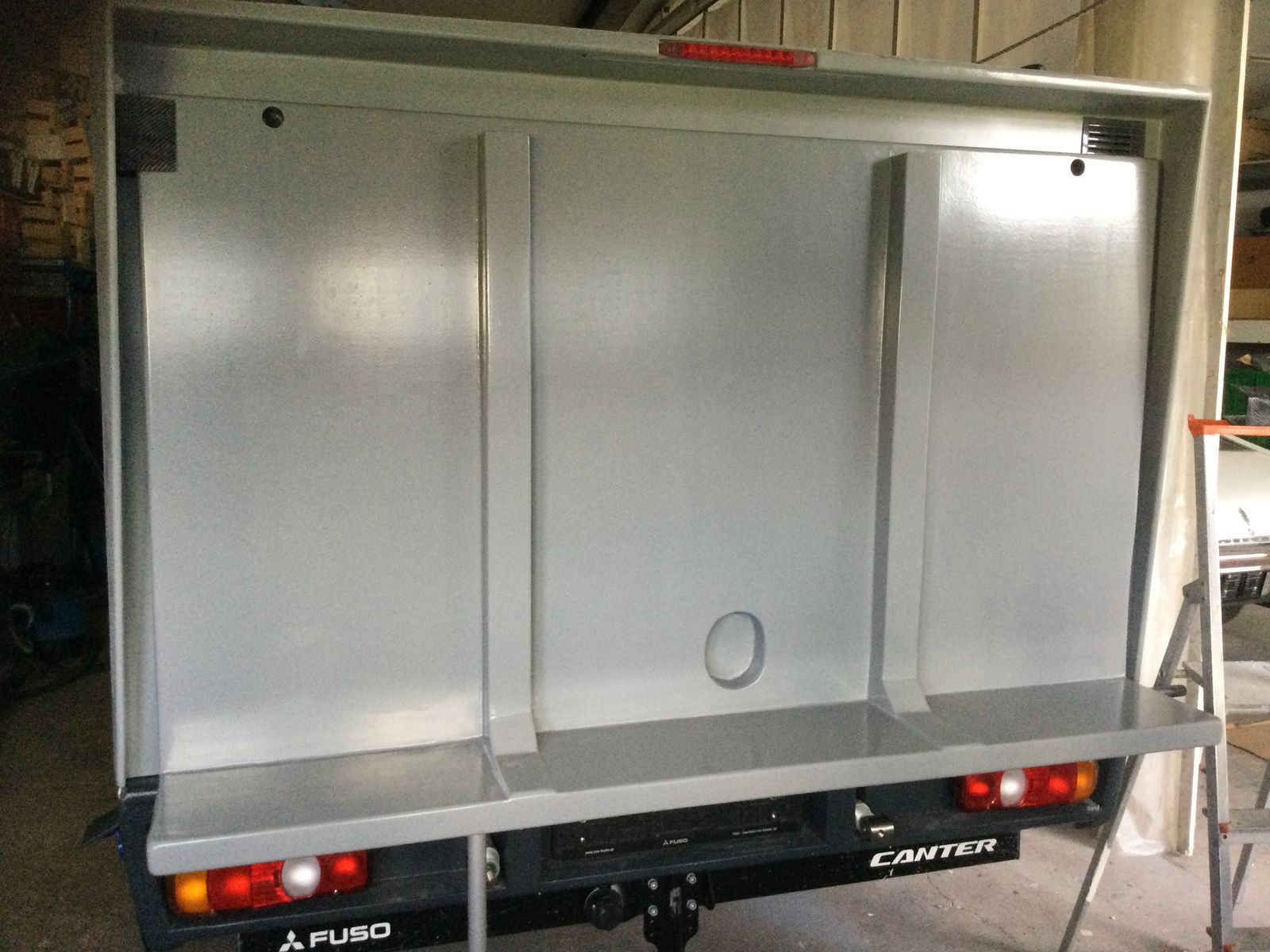 Dann wurde noch das Licht eingestellt und die Prüfer haben sich ins Büro verzogen, um die Daten für das Gutachten zusammenzuschreiben. In der Zeit haben sich Mitarbeiter und Kunden um das Fahrzeug gescharrt und sich gewundert. Die Mitarbeiter kannten alle schon die Fotos, also war der Fuso schon Gesprächsthema.