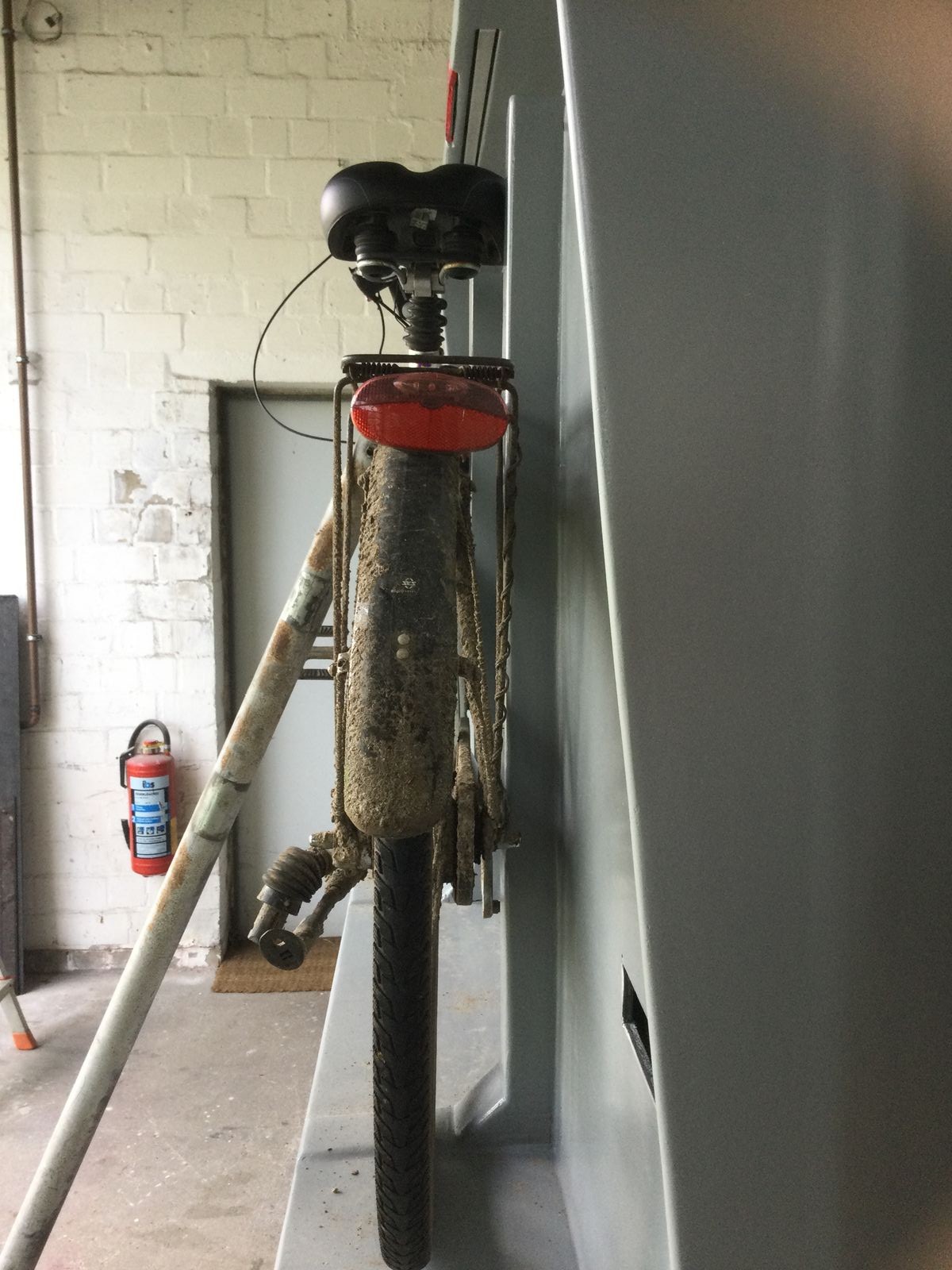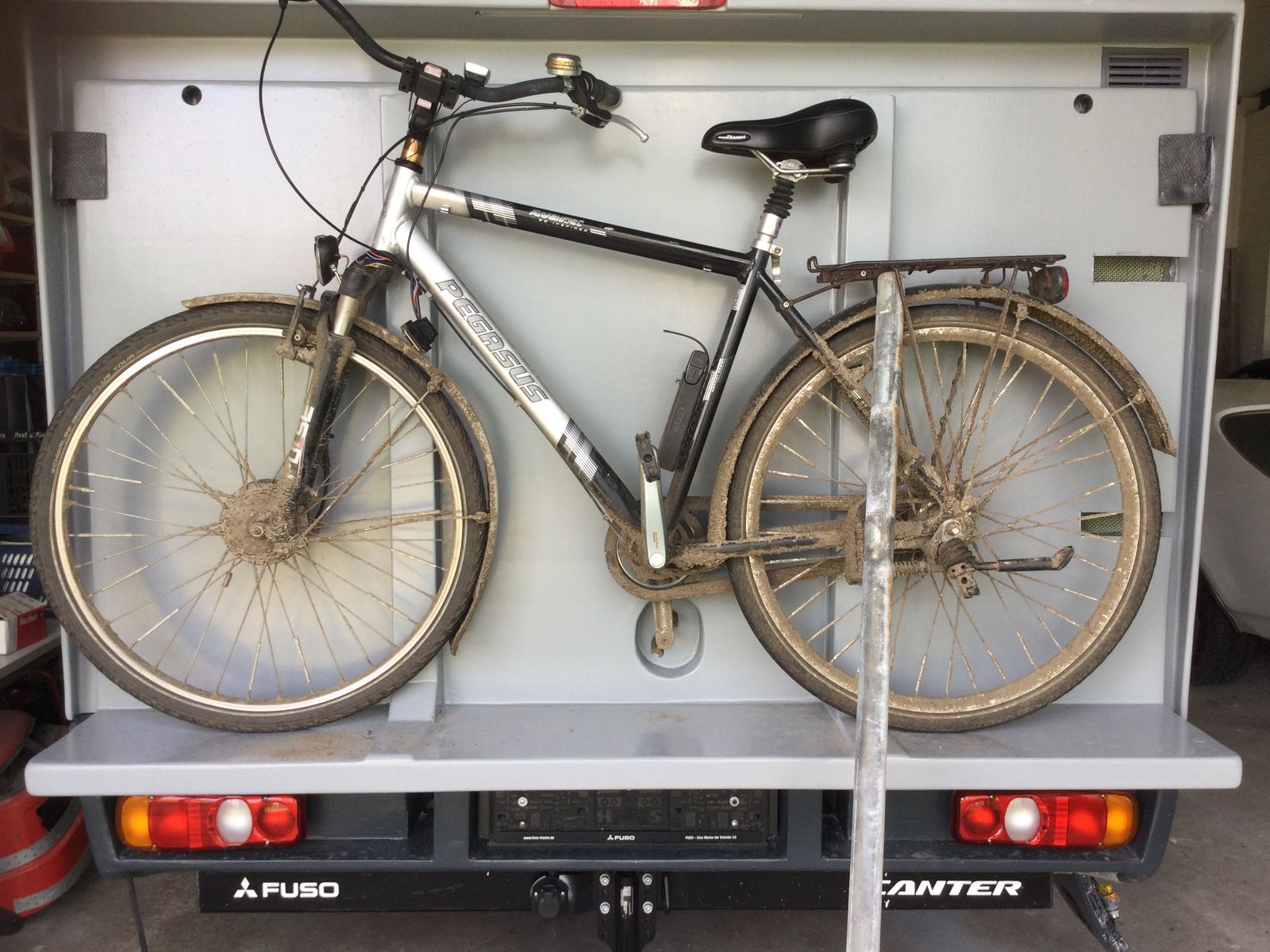 Dann habe ich probiert, ob mein Allrad-Fahrrad wirklich passt, nicht nur nach Plan. Was soll ich sagen, wenn ich das mal putzen würde, kann ich 2 kg Gewicht einsparen.