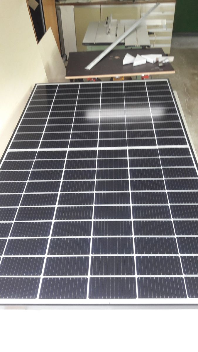 Damit mal was weiter geht hab ich am Wochenende beim Freund das Solarmodul abgeholt, Qcells Hausmodul mit 360W, 1,75x1m. Das kommt hinten quer aufs Dach,