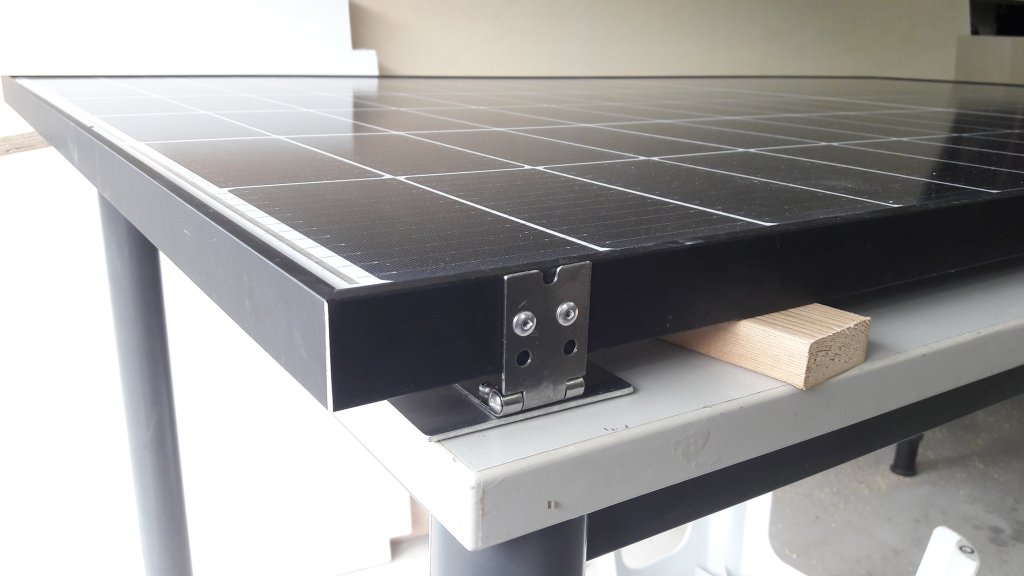Weil mich aktuell bei der Solarmontage gestört hat, dass man nie drunter saubermachen kann, wird jetzt das Modul klappbar gemacht.