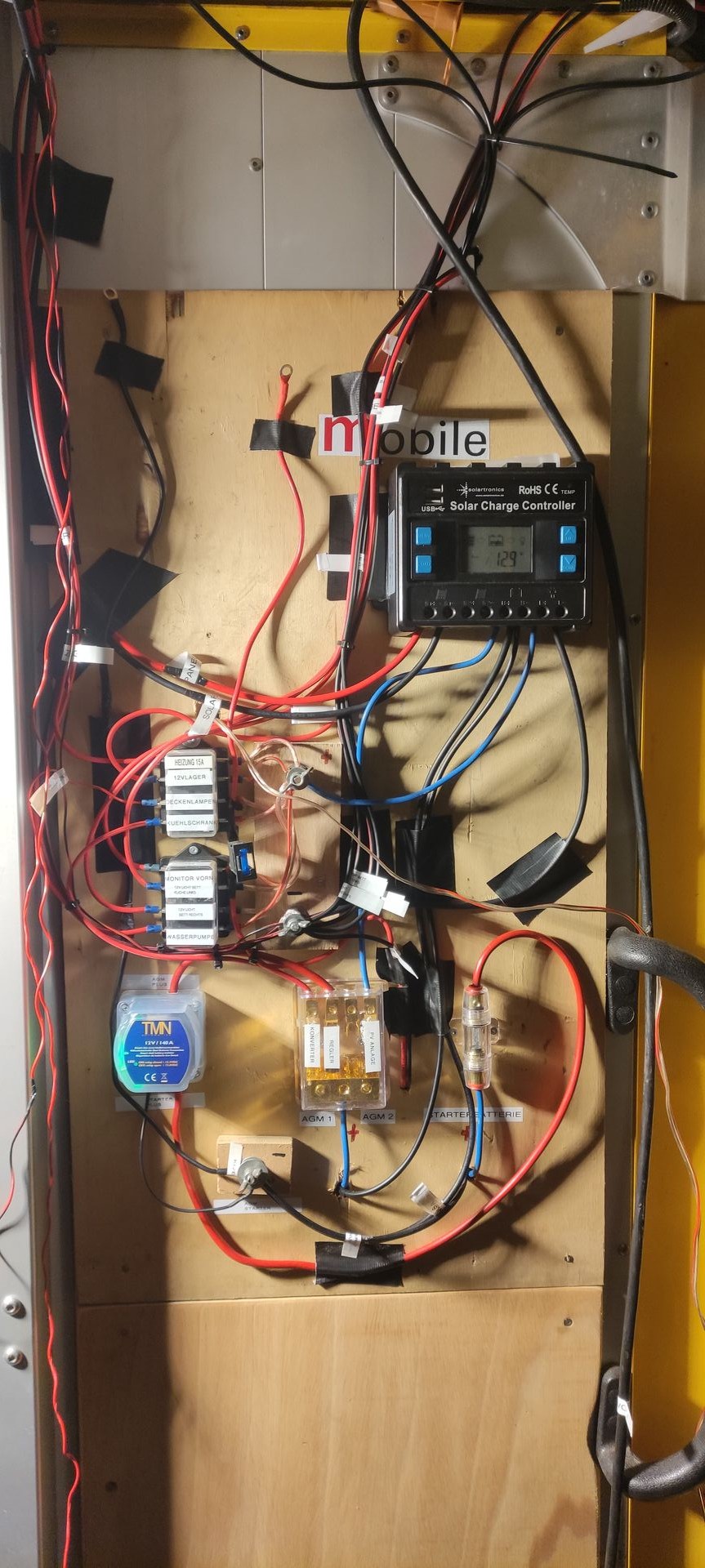 Elektrik verlegt Solaranlage aufs Dach 2 mal 120 AH AGM Akku untern sitz...
