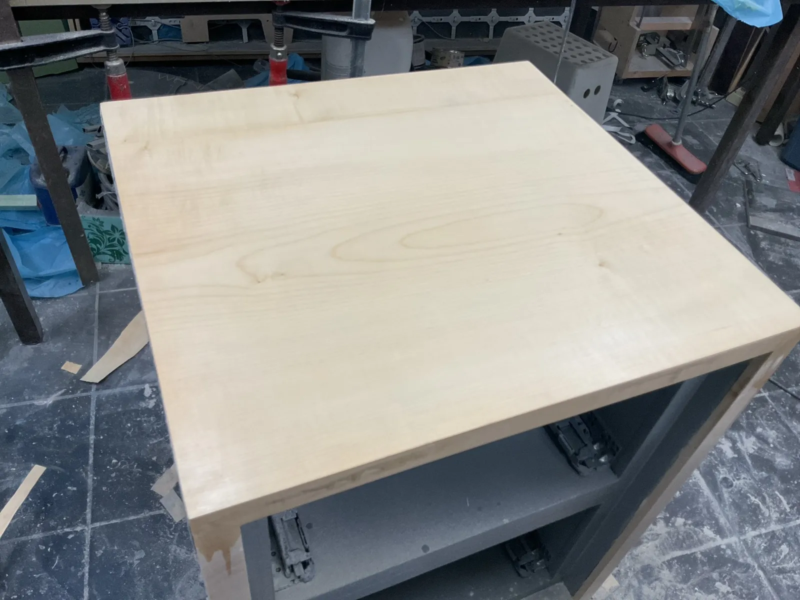 der Kühlschrankbau kommt nicht gut voran, weill ich viel mit dem Wagen unterwegs war, insgesamt 700 km bis jetzt. Der Kühlschrank ist innen lackiert und hat die Furnierschichten bekommen.