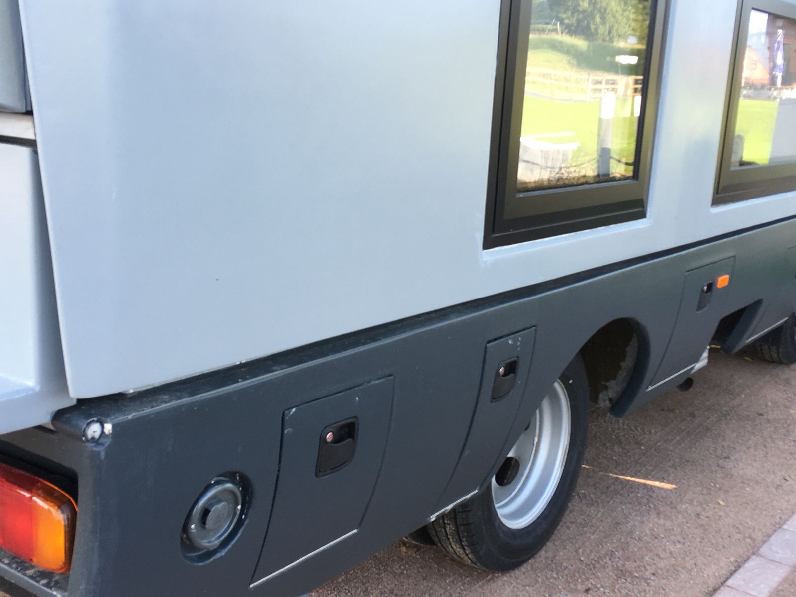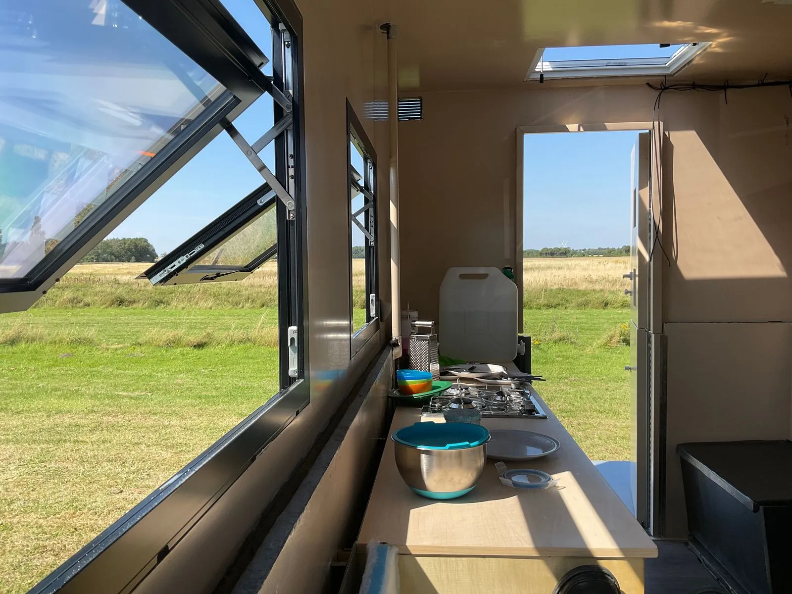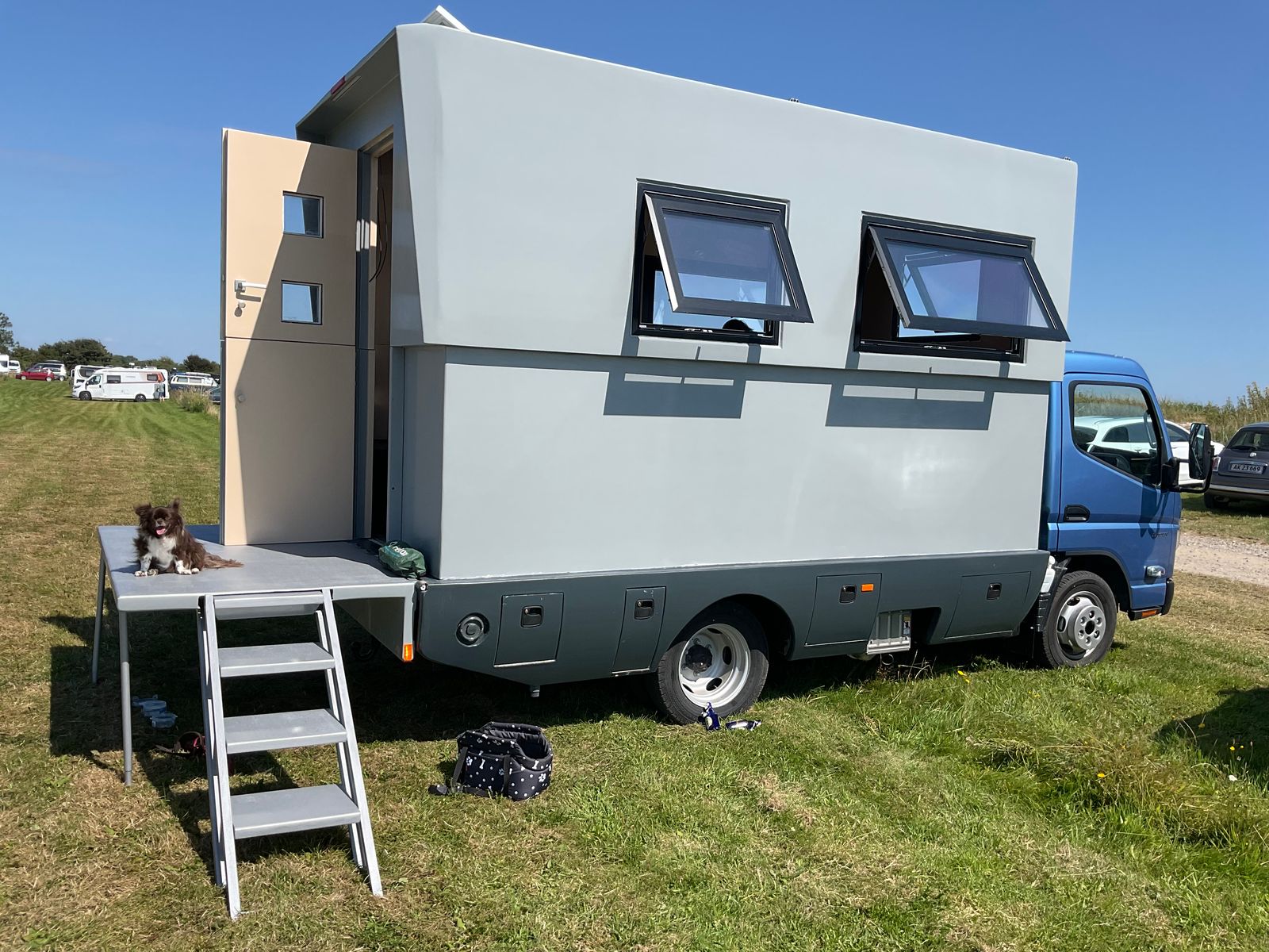 Tanken funktioniert, wurde vorher nur am PC simuliert. Zuerst an einem warmen Sommertag ein einigermassen einsames Plätzchen in Dänemark am Meer gesucht und gefunden. Dazu zwei Freunde mit Hund eingeladen. In der Flensburger Innenstadt war es manchmal eng aber ich bin gut durchgekommen. Richtig gemütlich war es für die Mitreisenden wegen des schmalen Fahrerhauses nicht. Der Hund mag nicht Autofahren und wollte sich hinter den Fahrersitz quetschen, aber da ist ist schon die Rückwand. Wir standen in der Sonne, hatten aber wegen der Querlüftung nicht mehr Temperatur als die Luft draussen. Der Rundumblick ist bombastiasch. Die Schaumstoffe haben noch keine Bezüge, waren aber trotzdem schon bequem.