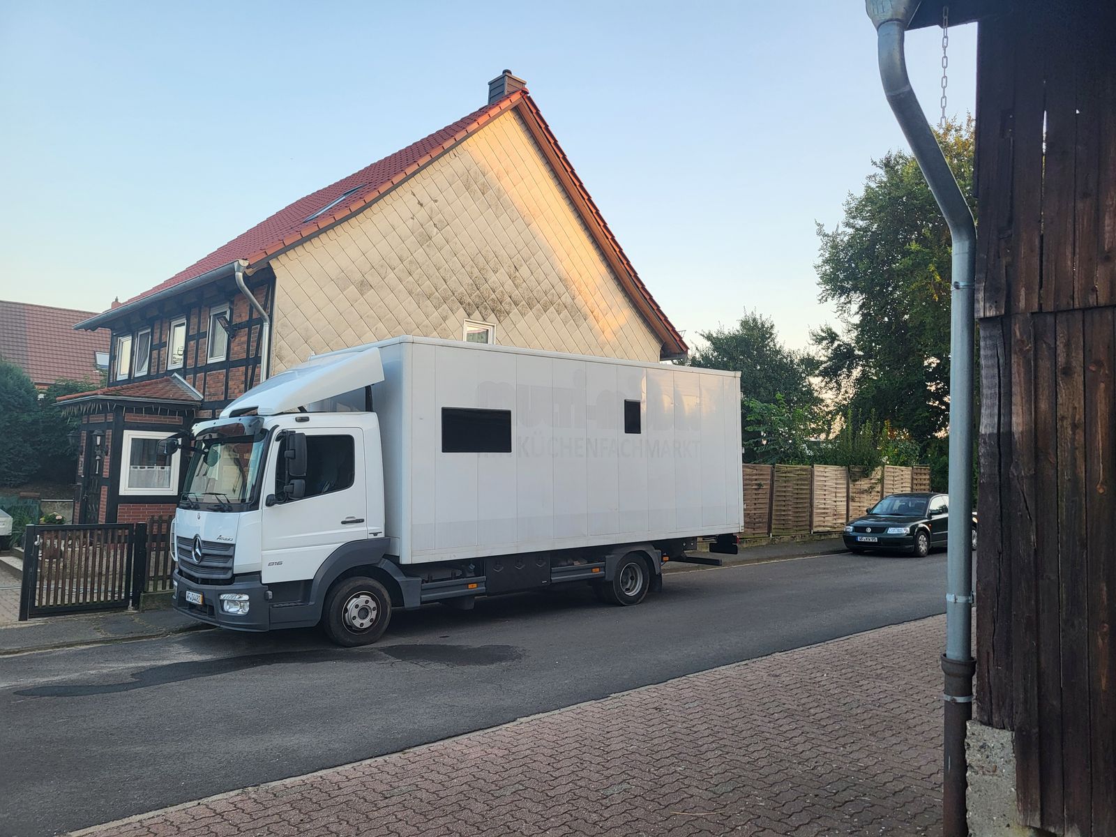 Da steht er nun und wartet - Parkplatz geräumt. Leider keine Fotos vom ausparken. Die Zufahrt bietet rechts und links vom Koffer keine 15cm Platz ![]()