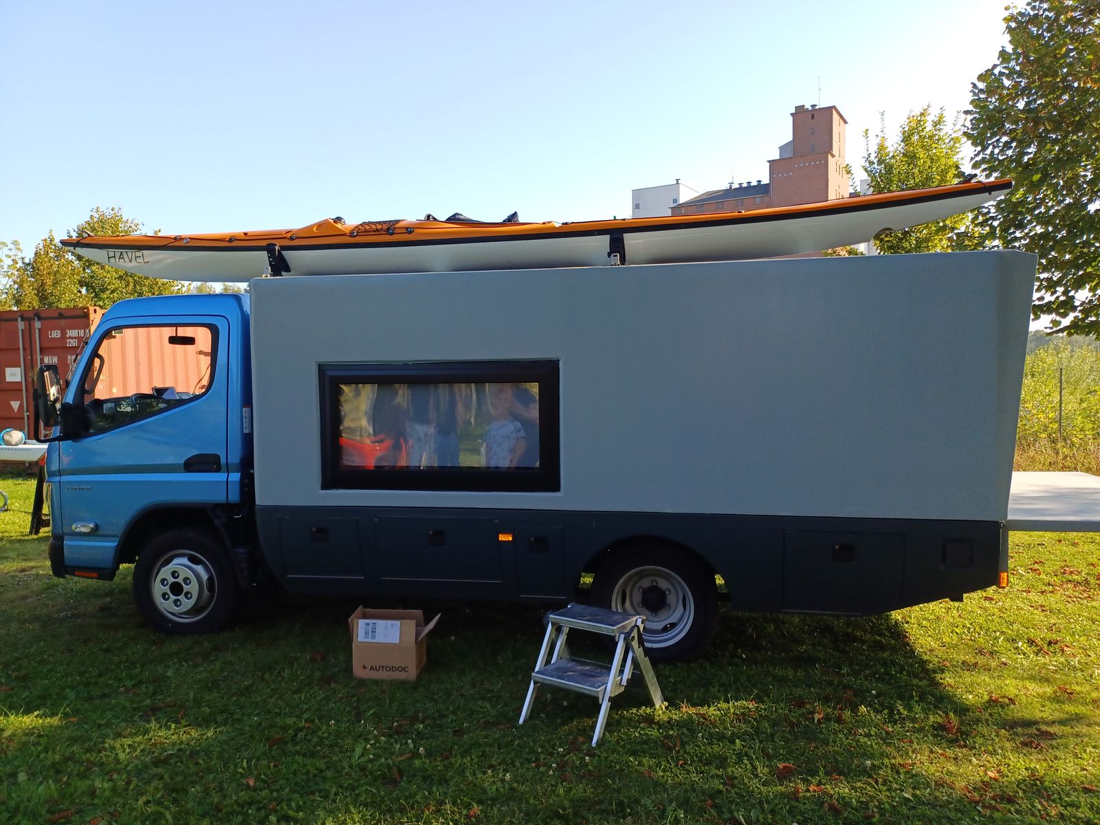 Gestern war Sommerfest beim Kanuverein und der Wunsch, mein Fahrzeug besichtigen zu dürfen. Bei der Gelegenheit haben wir getestet, ob man mit Bordmitteln die Kajaks aufladen kann. Also Deckel 30 cm hochfahren, Terrasse runter, Tritt rausholen und Deckel wieder runterfahren, klappt.