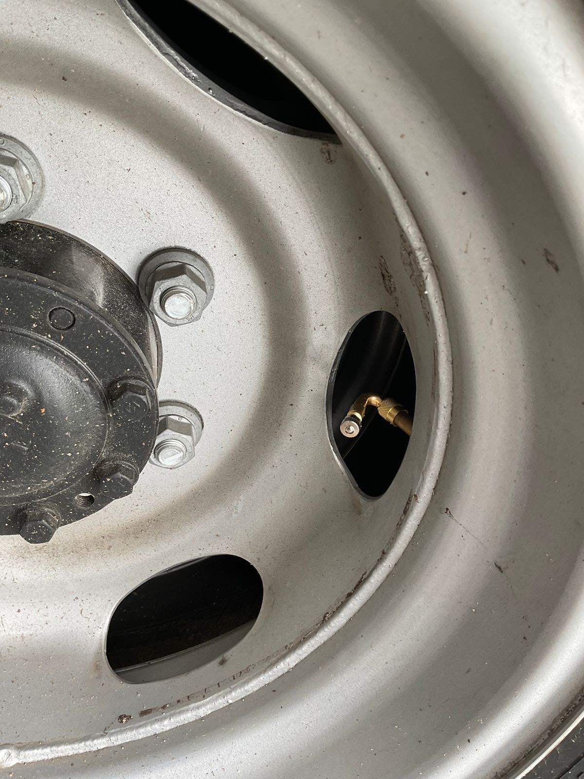 Beim Testen der Reifenfüllvorrichtung habe ich gemerkt, dass die äusseren Zwillingsreifen nicht gut zugänglich waren, jetzt mit Umlenkung.