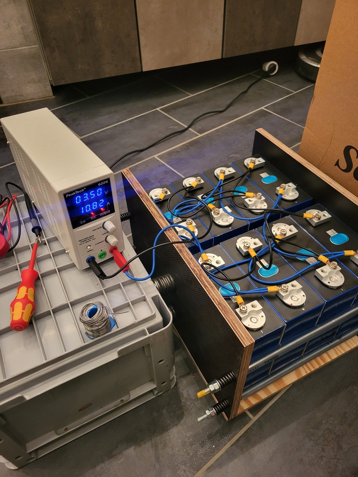 SO - nach ca 245h ist das gute Stück bereit für die weitere "Bearbeitung", Zellen sind auf 3,5V geladen...