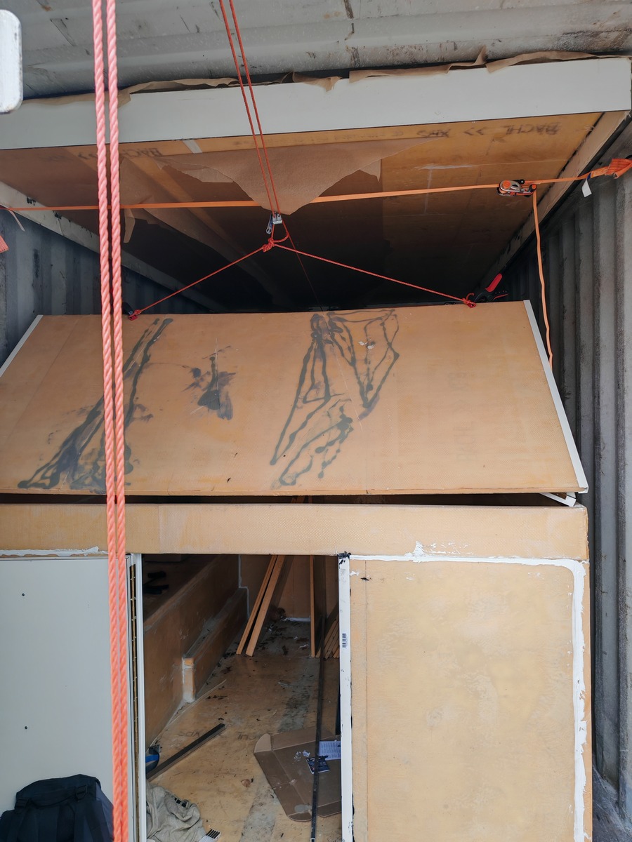 Gasdruckfedern können erst außerhalb des Containers ran, da ich seitlich nicht rankomme.