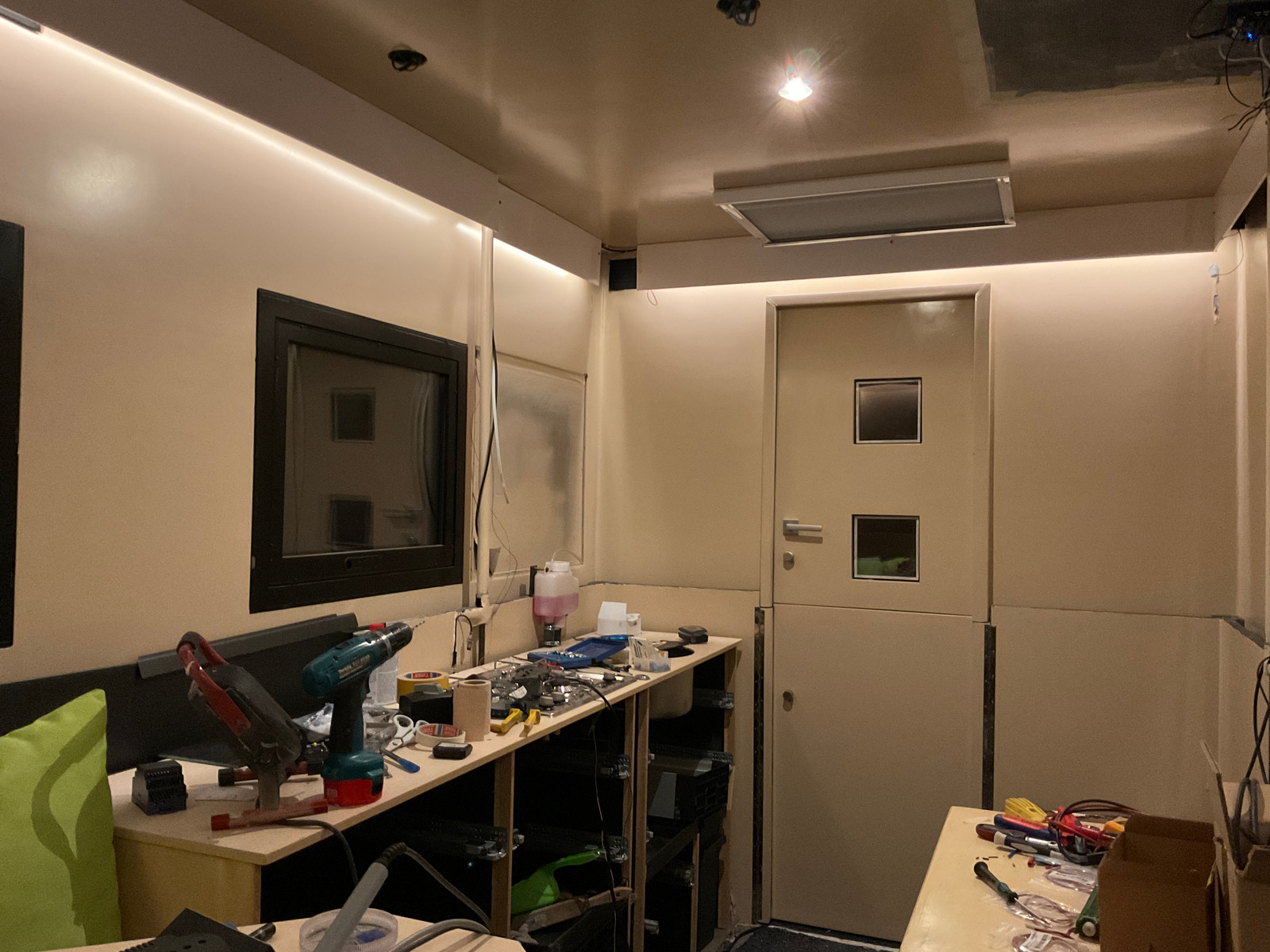 Die Blenden wurden grundiert, weiss lackiert und mit warmweissen COB-LED Streifen beklebt. Vor der Montage der Blenden wurde der umlaufende Kabelbaum verlegt. Die LEDs haben Steckverbinder, so dass man die Blenden jederzeit abnehmen kann.